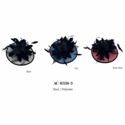 Bibi De Cérémonie à Voilette En Grosse Fleur Avec Plumes Coloris MIX