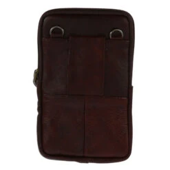 Pochette Portée Ceinture En Cuir à Plusieurs Poches Bordeaux
