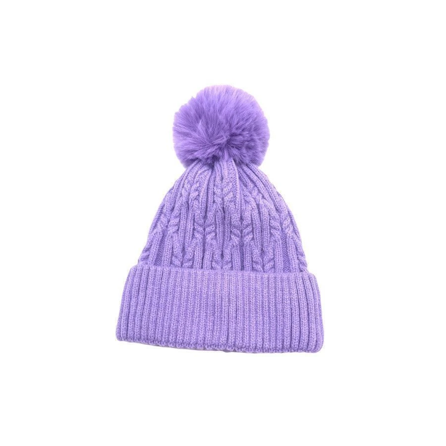 Bonnet tricoté en maille torsadée et doublé polaire. Un joli accessoire à porter en hiver !