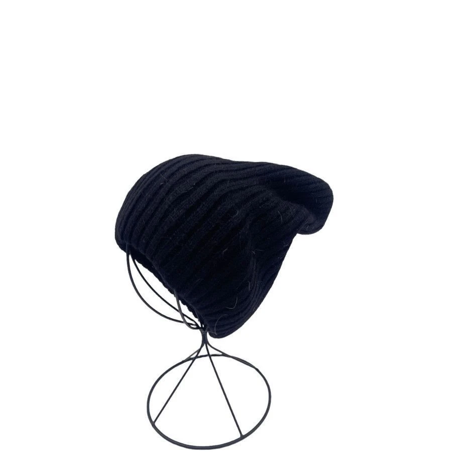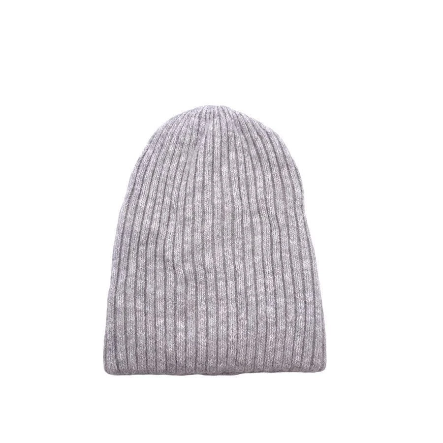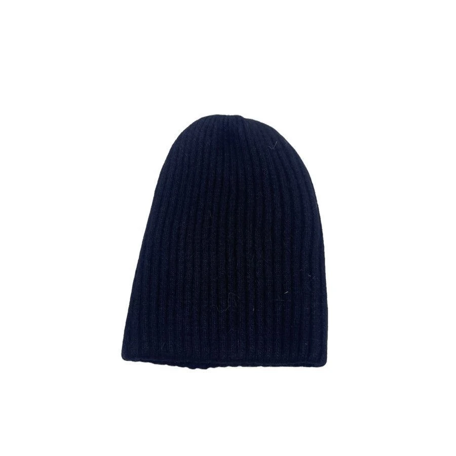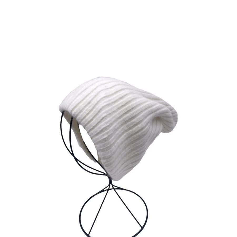 Bonnet tombant en grosse maille côtelée, fait à partir d’acrylique.