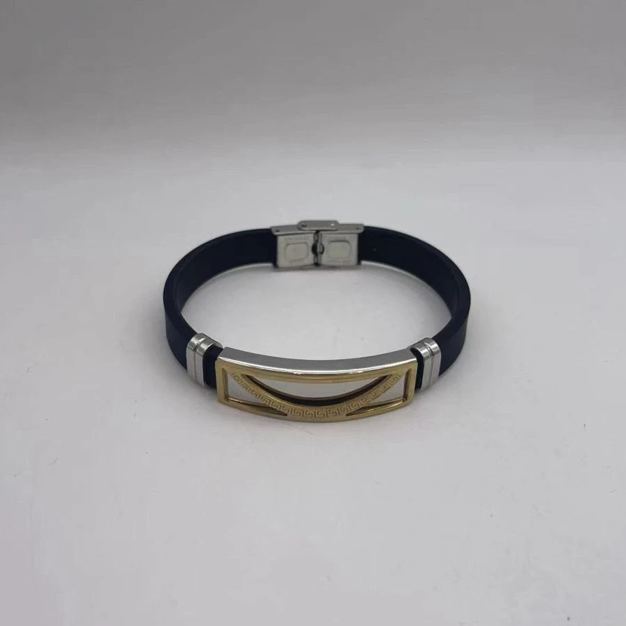 Bracelet Avec Double Lanière Tressée Noir Et Anneaux En Métal