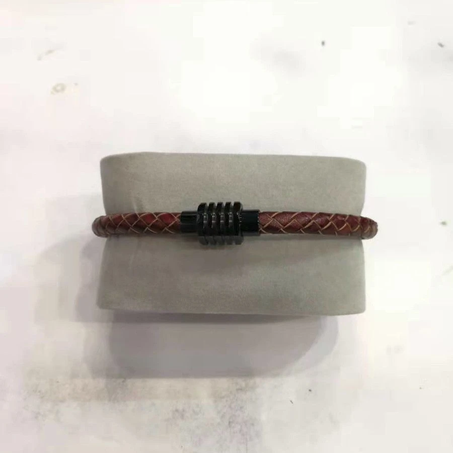Bracelet à 2 Cordons En Cuir Tressé Noir Agrémenté De Passants Métal