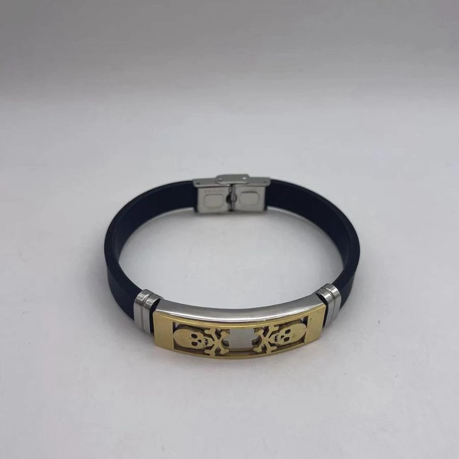 Bracelet à 2 Cordons En Cuir Tressé Noir Agrémenté De Passants Métal