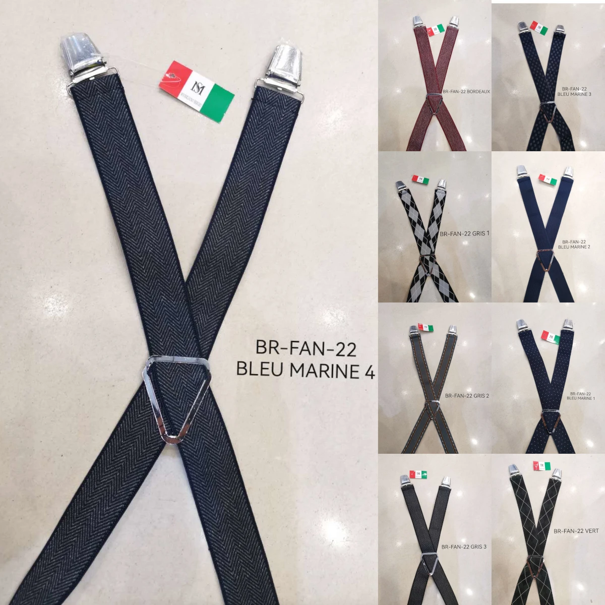 Bretelles élastiques classiques à dos en X fixé par une boucle en métal.