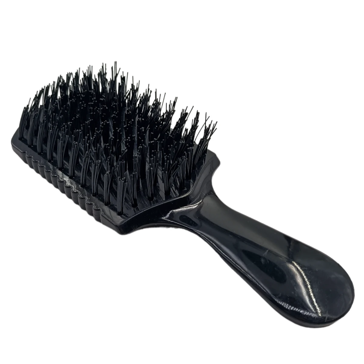 Une grande brosse à cheveux d’une forme rectangulaire avec des poils en plastique.