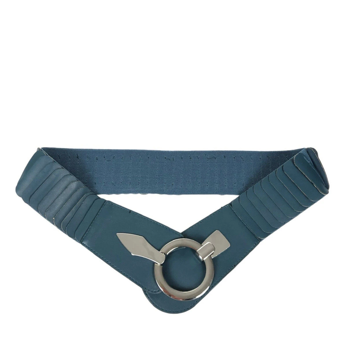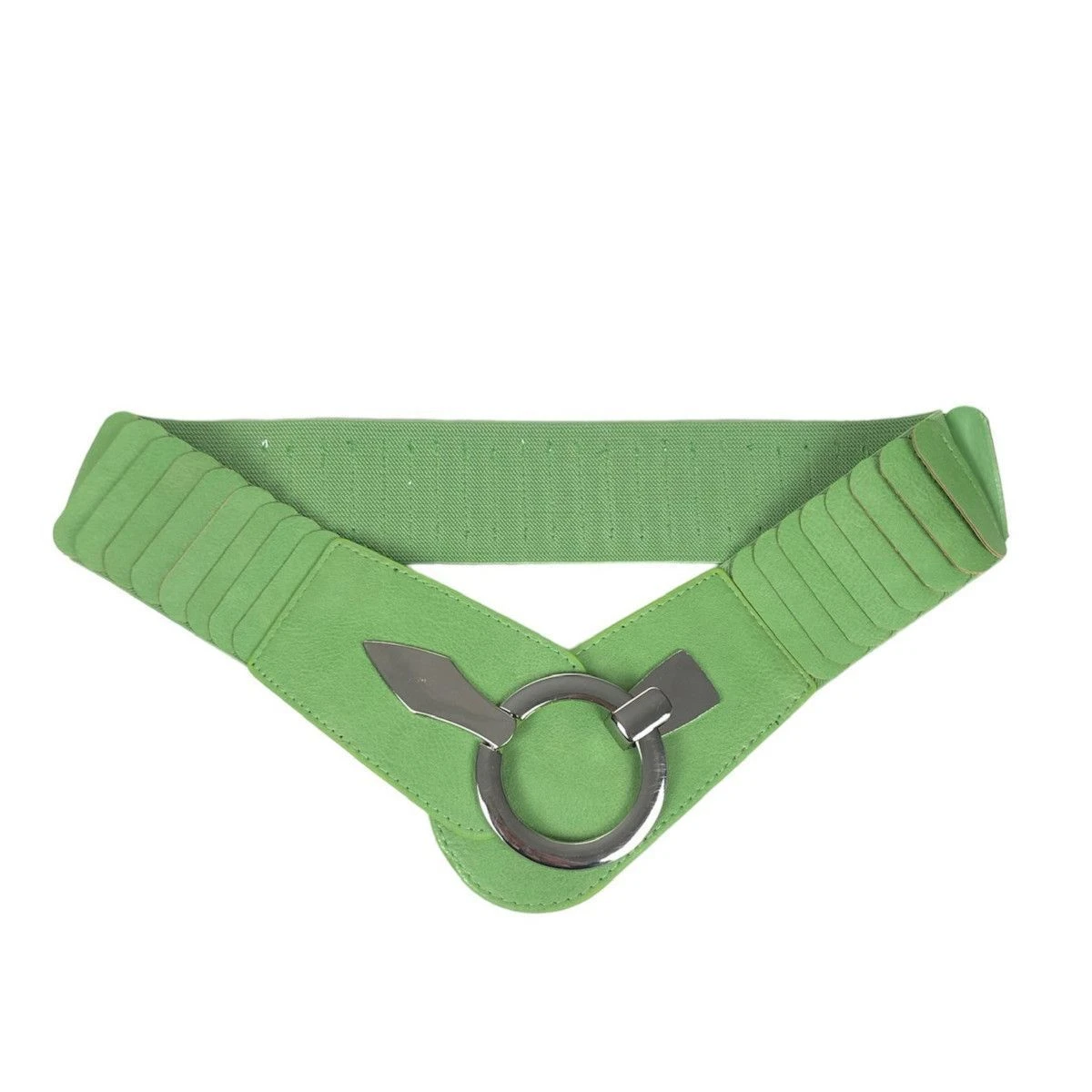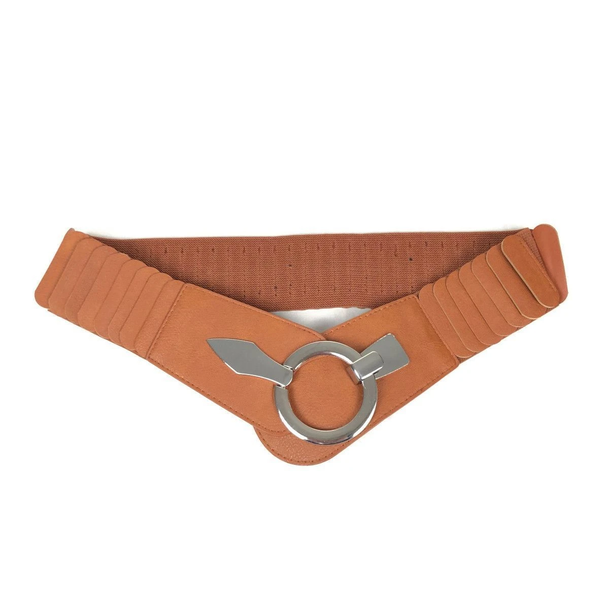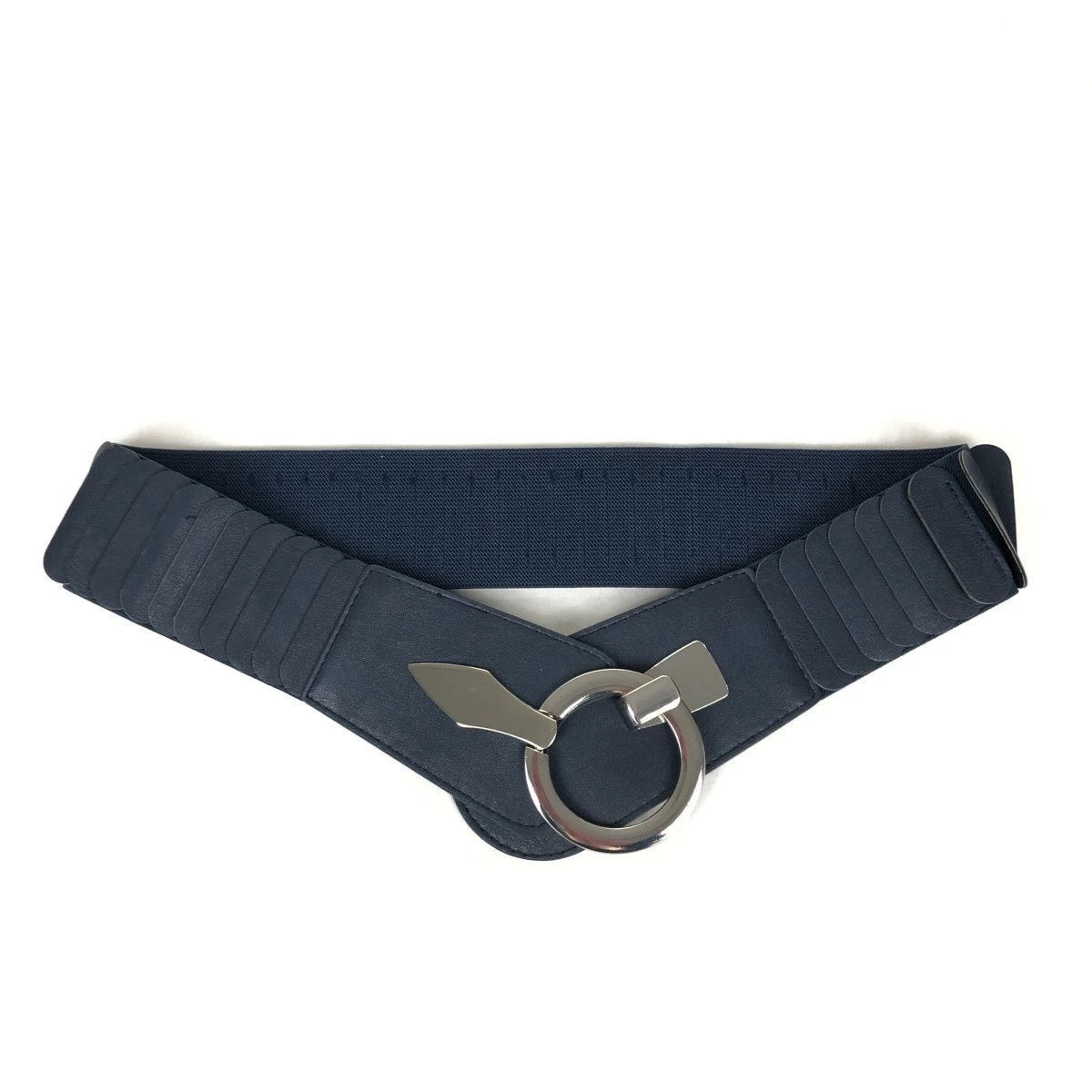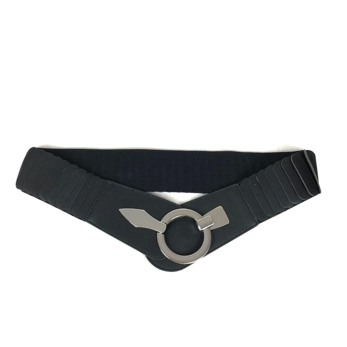 Large ceinture fabriquée en similicuir avec un matériau élastique agréable.