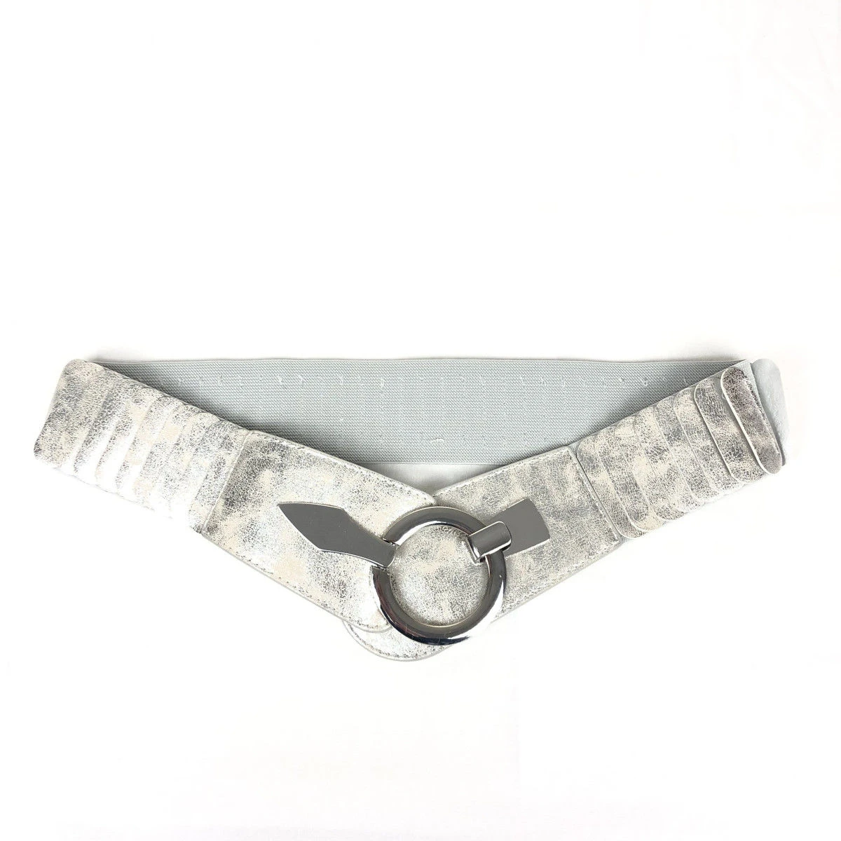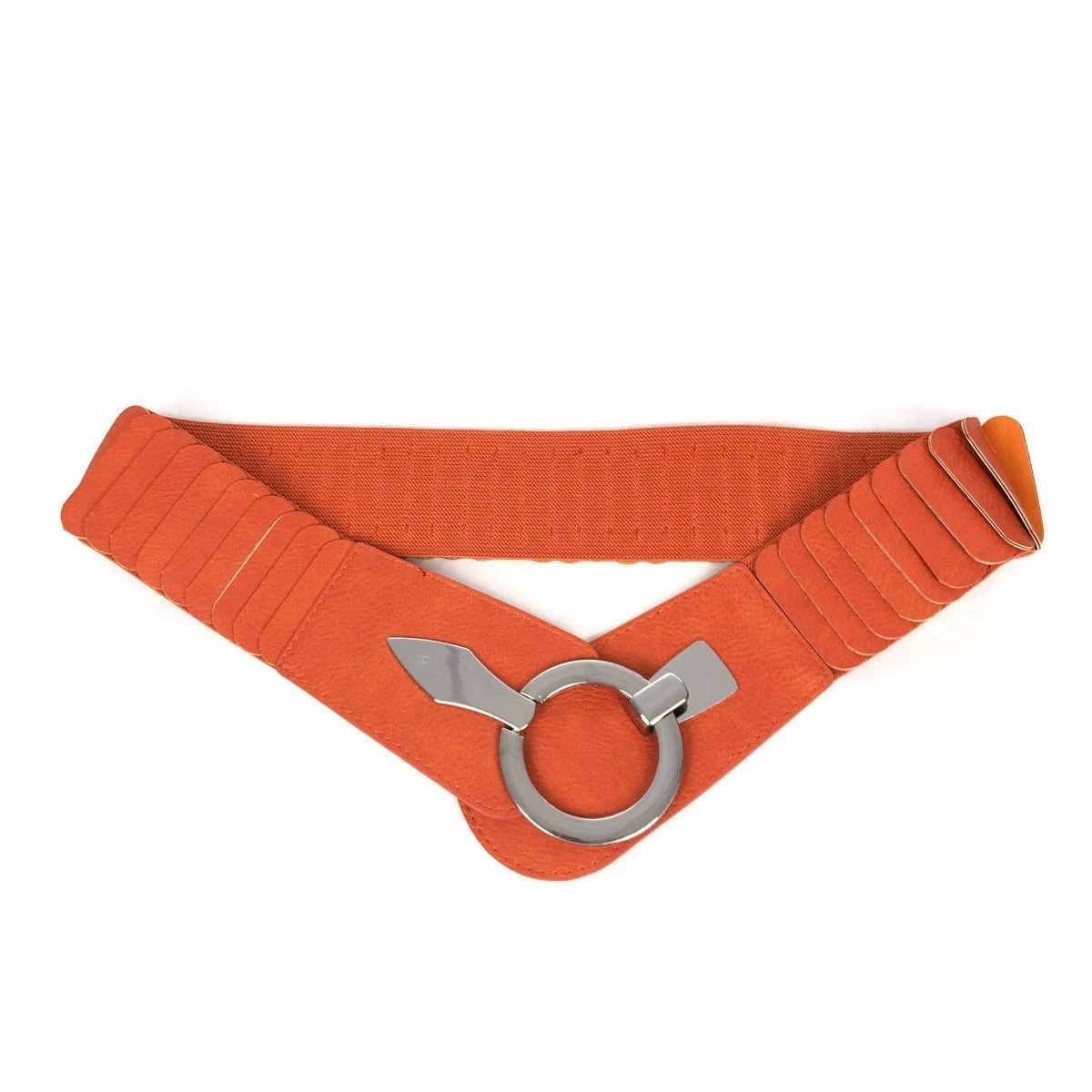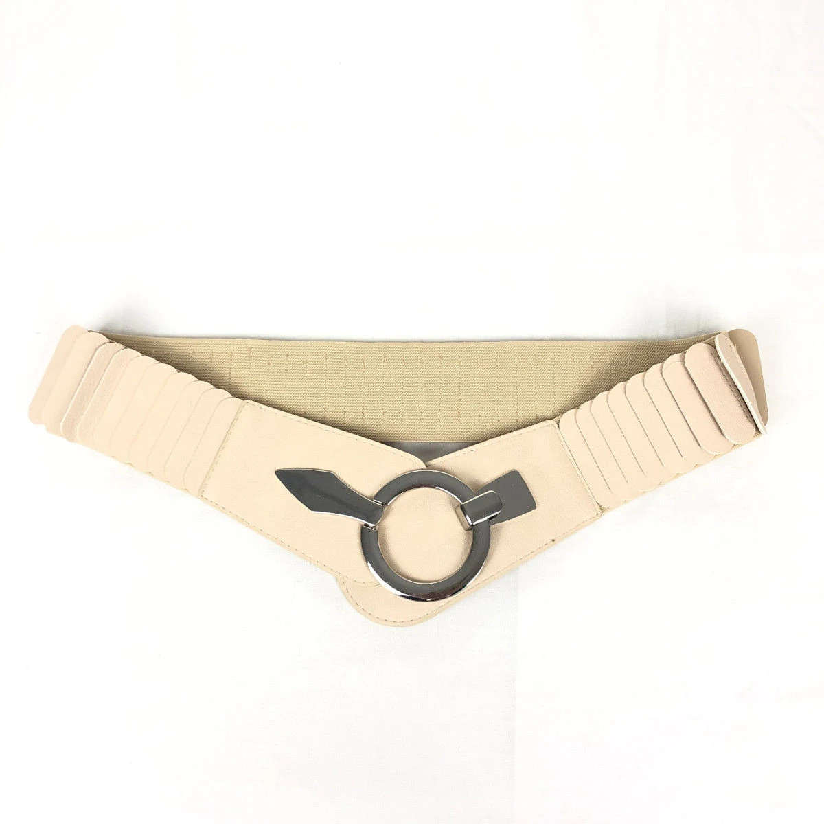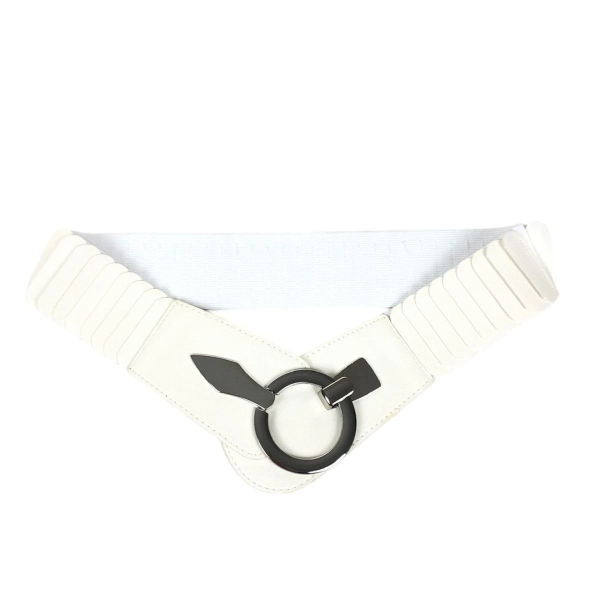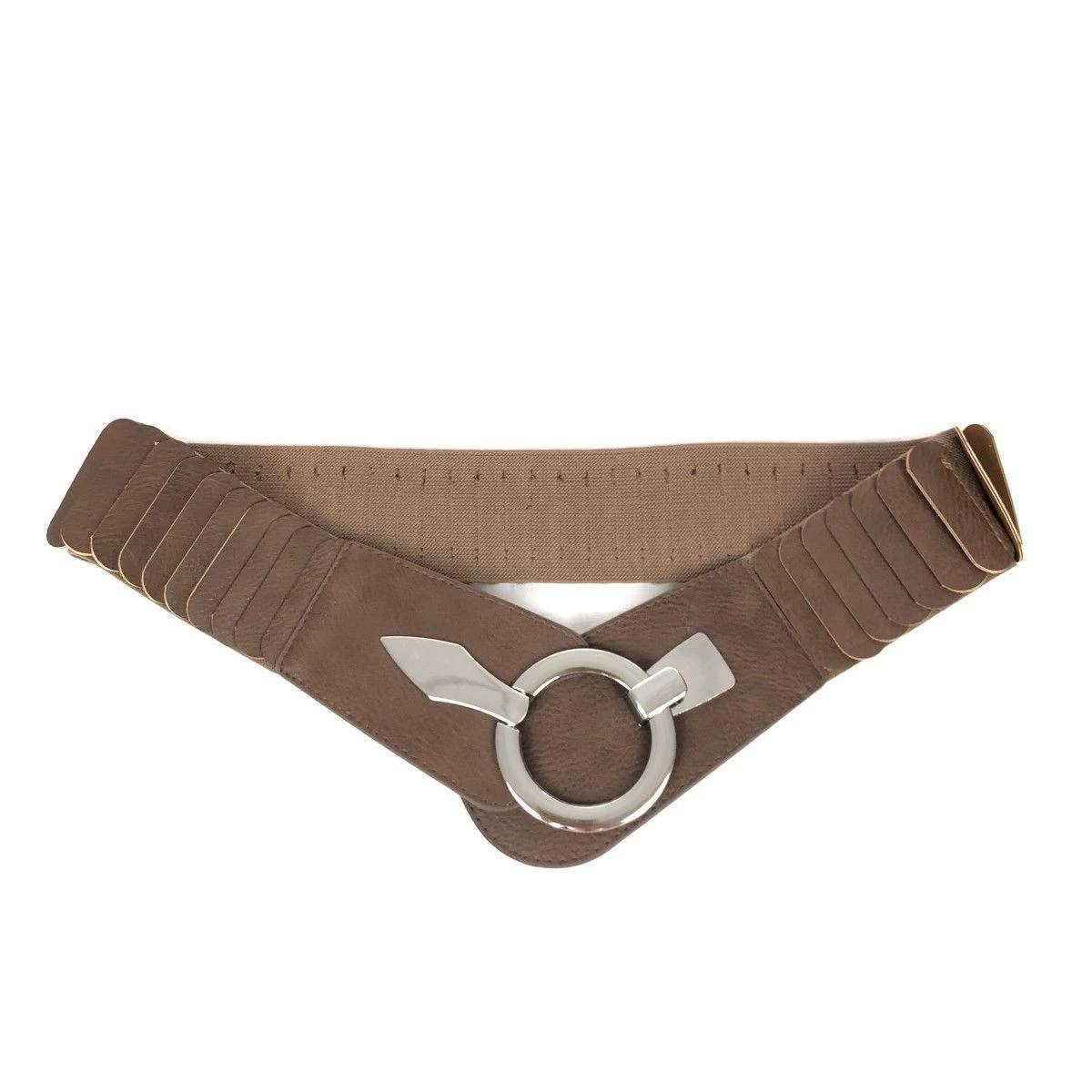 Large ceinture fabriquée en similicuir avec un matériau élastique agréable.