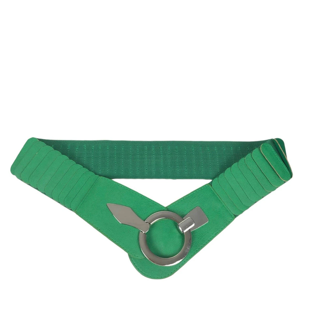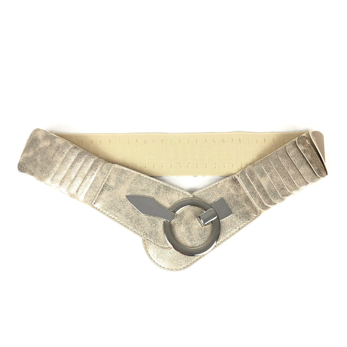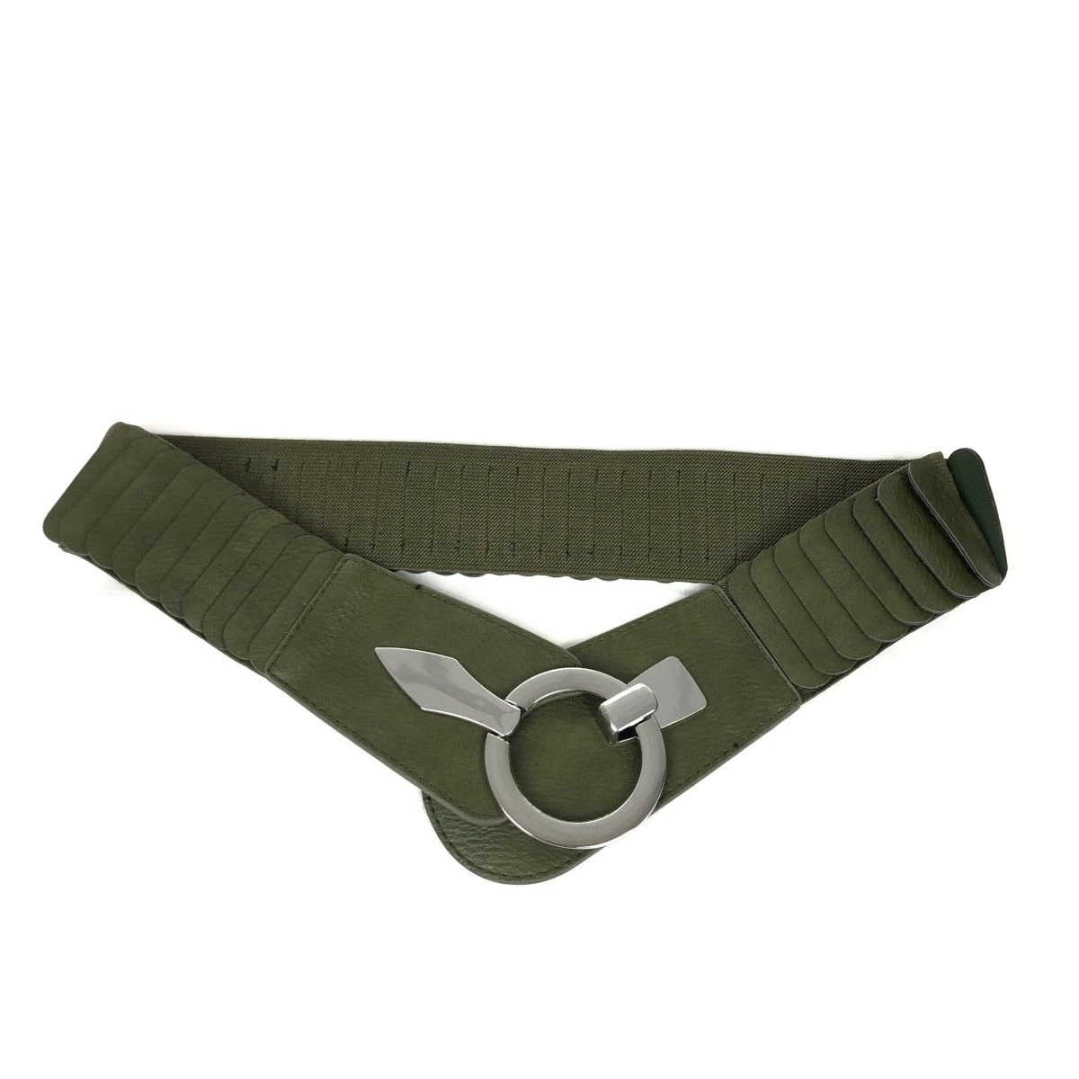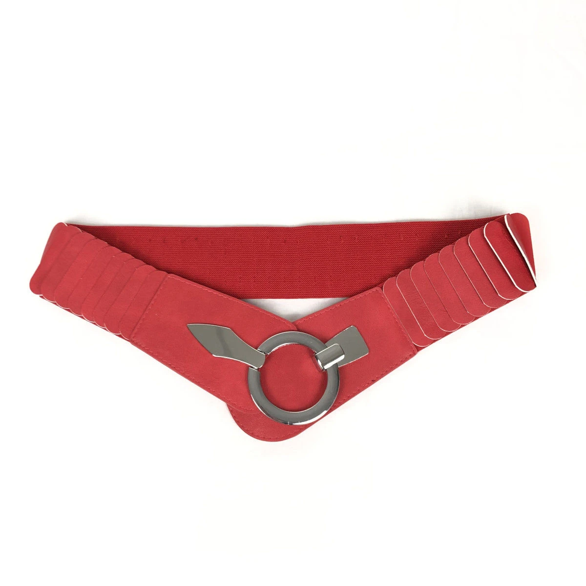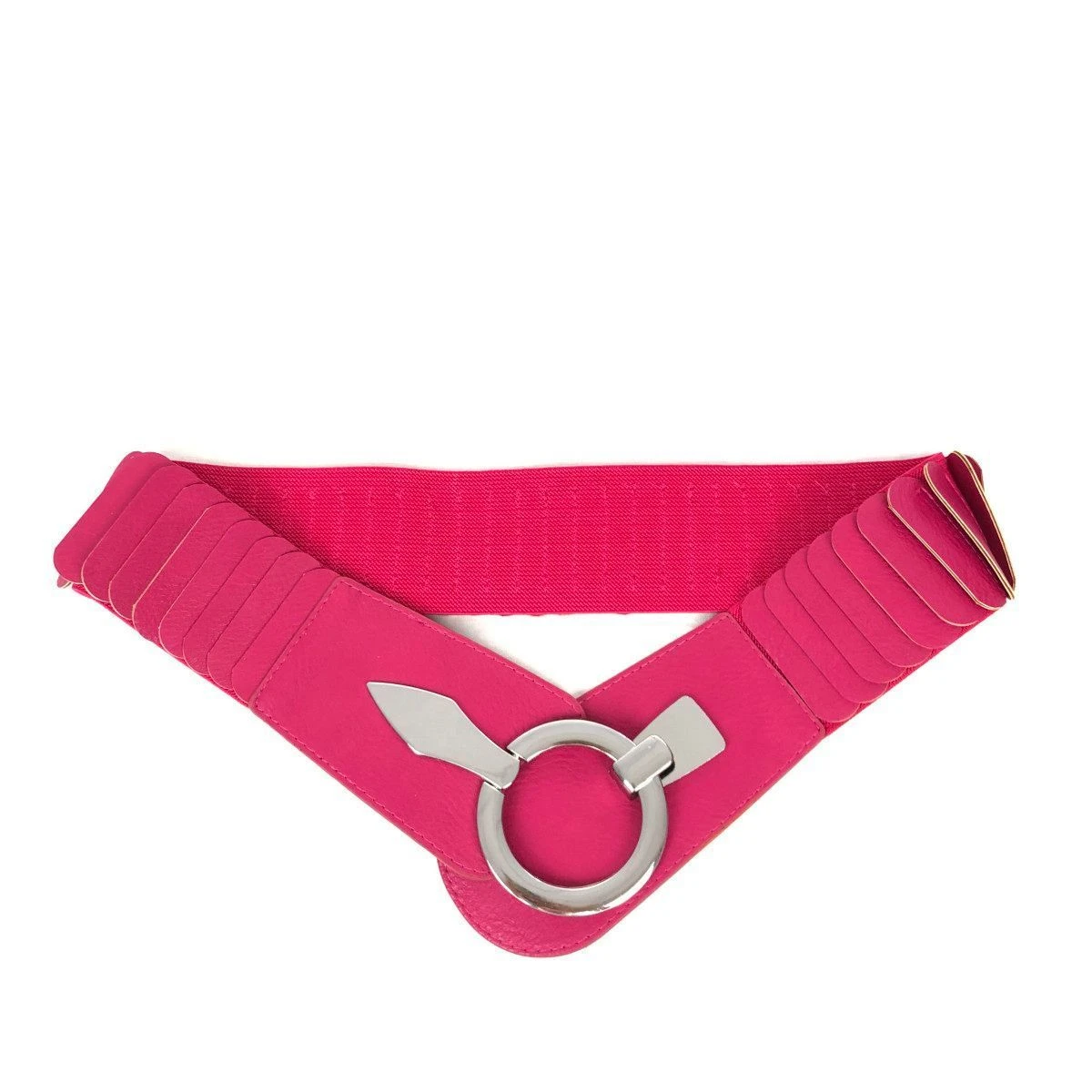 Large ceinture fabriquée en similicuir avec un matériau élastique agréable.