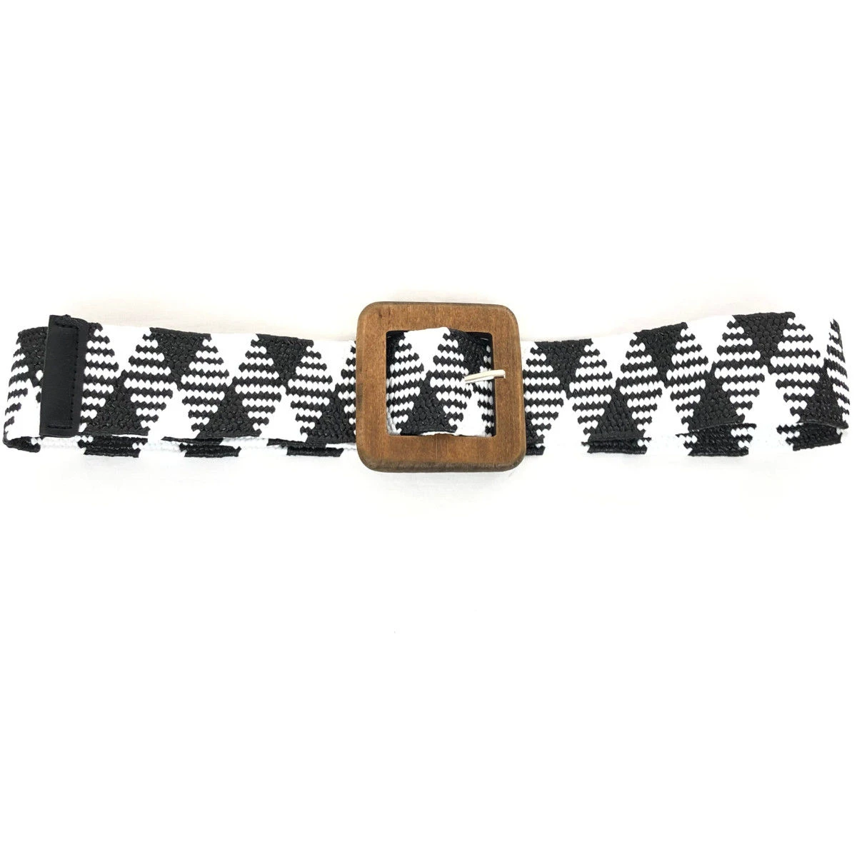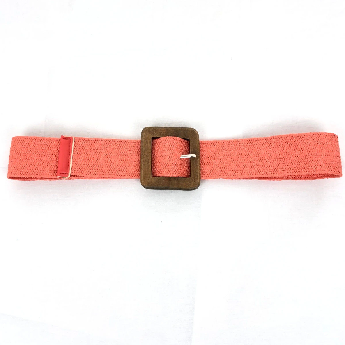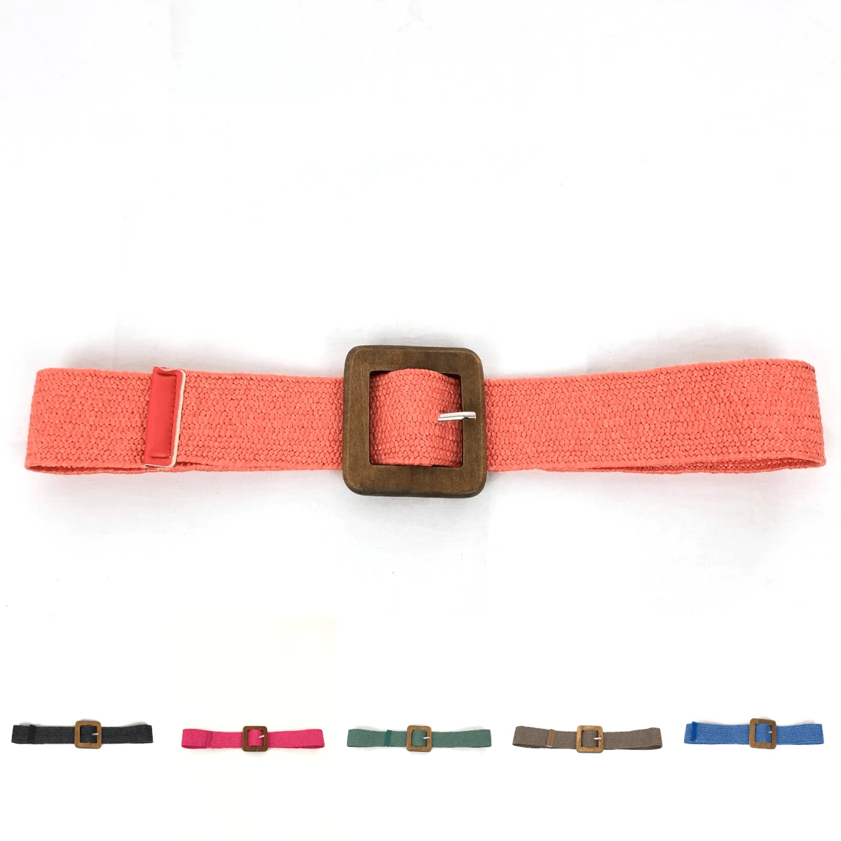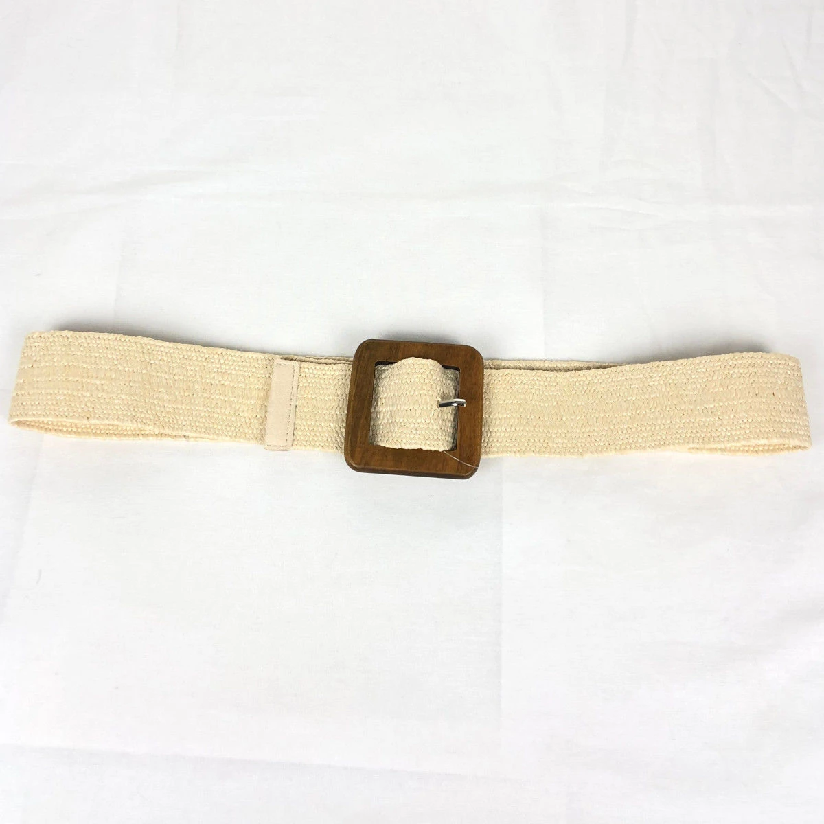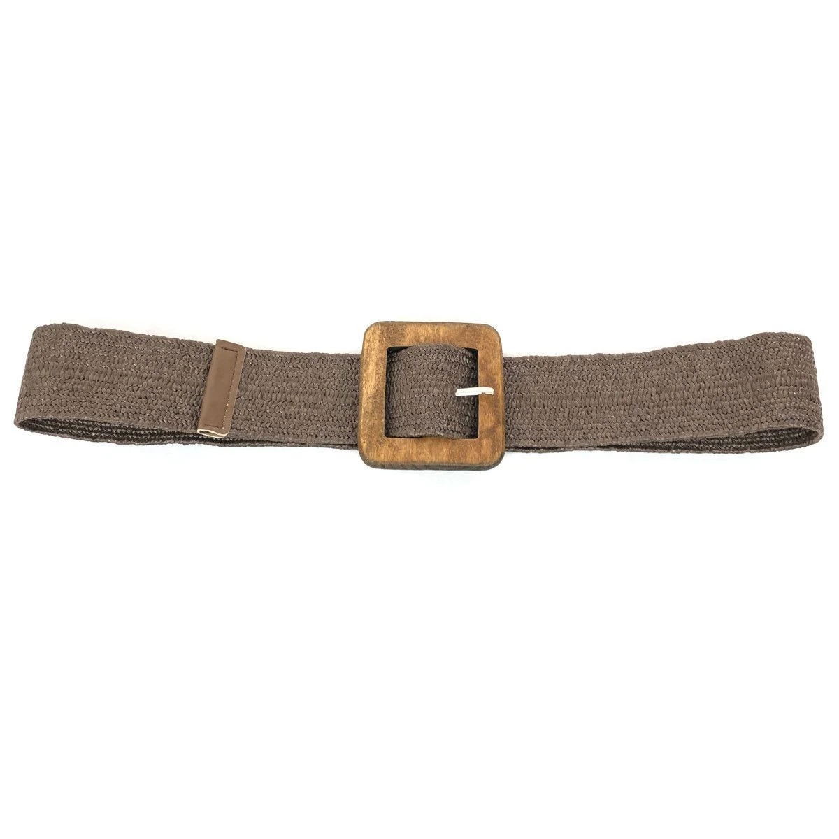 La boucle en bois de forme carré donne à la ceinture un look chic.