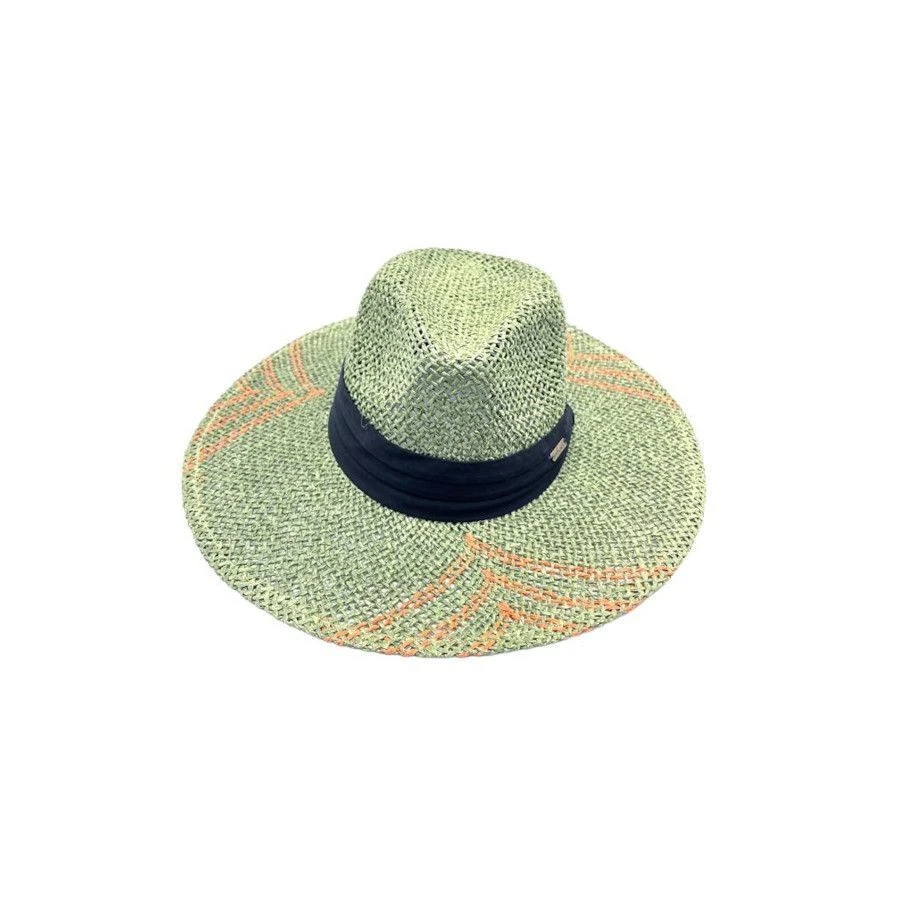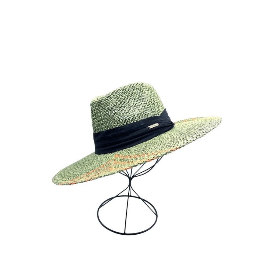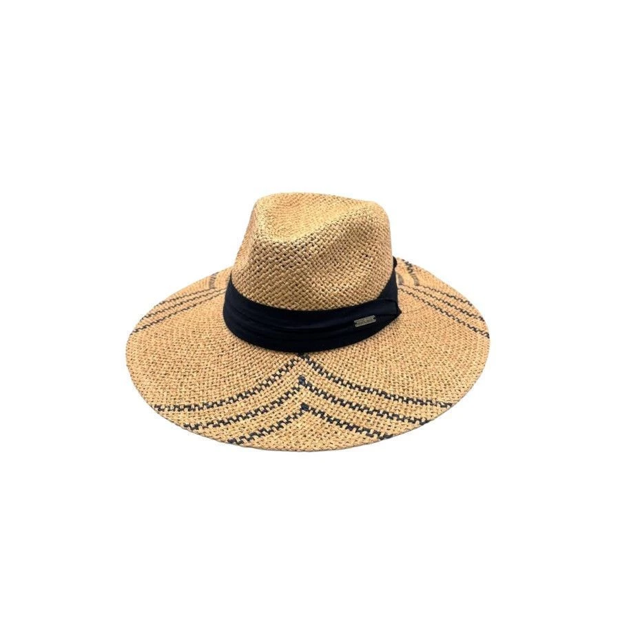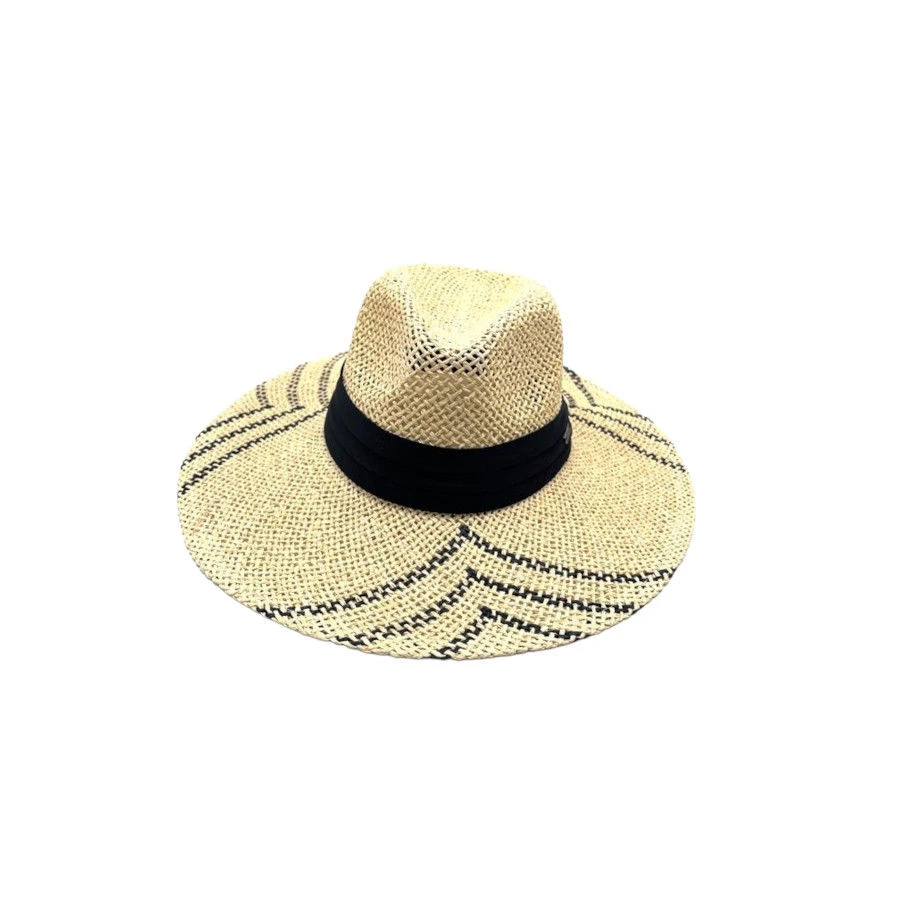 Chapeau à large bords en fibre de papier macramé avec motifs rayures.