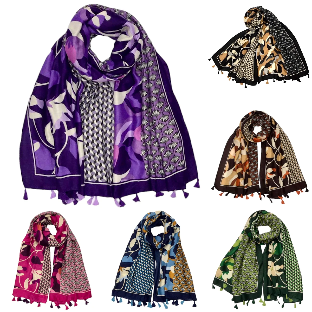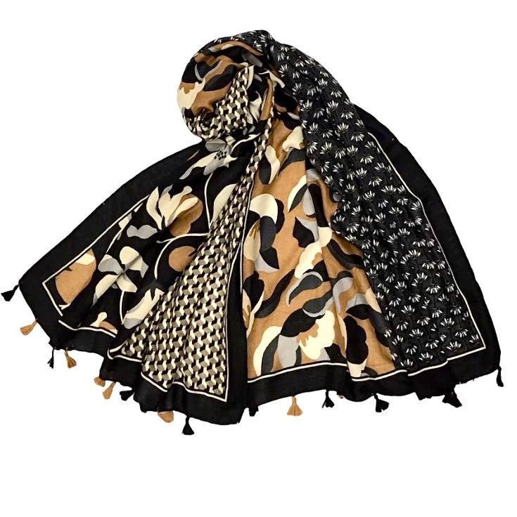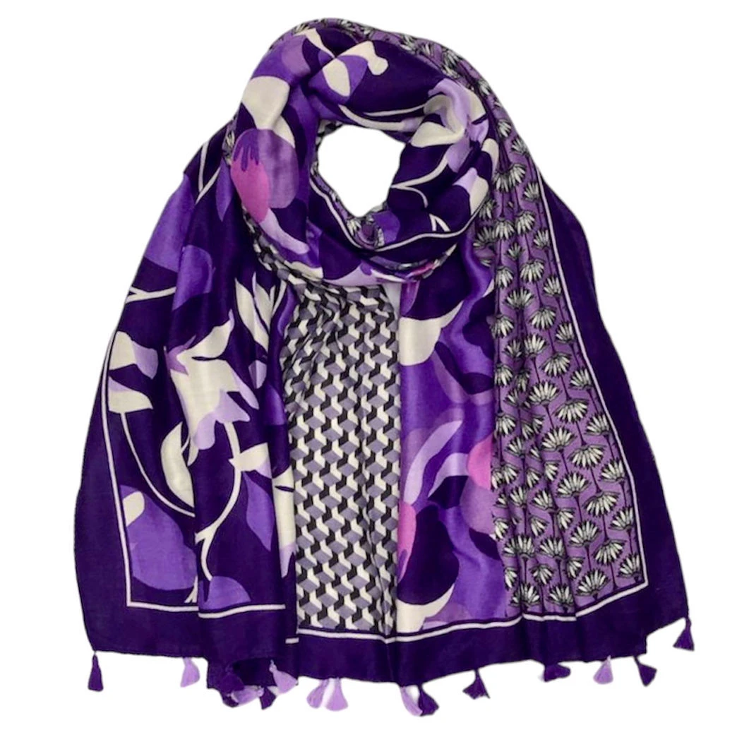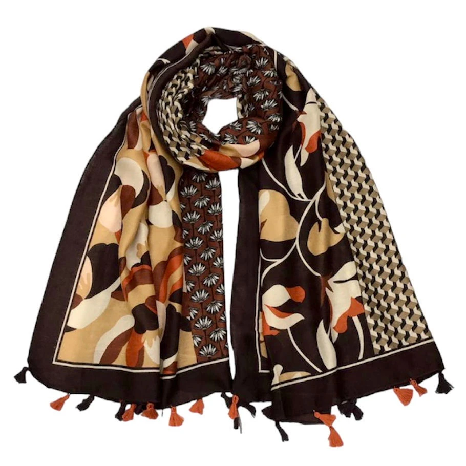 Belle écharpe à imprimé floral et bordure avec pompons pour une touche glamour et tendance.