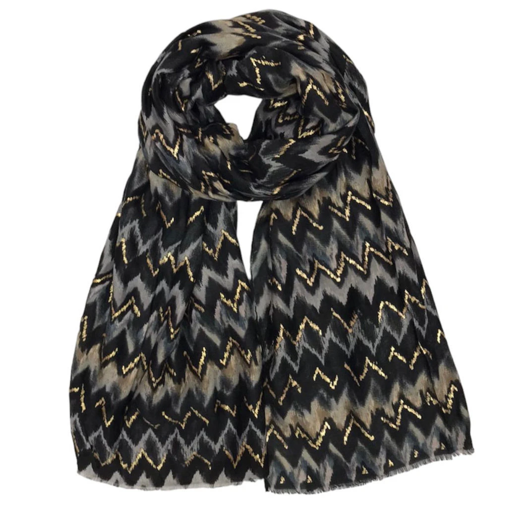 Écharpe en tissu de viscose et coton au motif zigzag mélangé de couleur dégradée.
