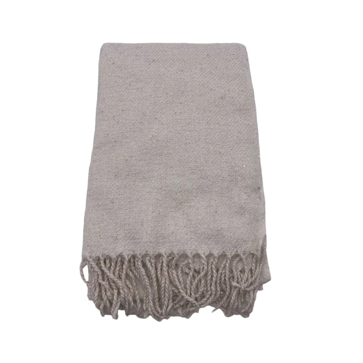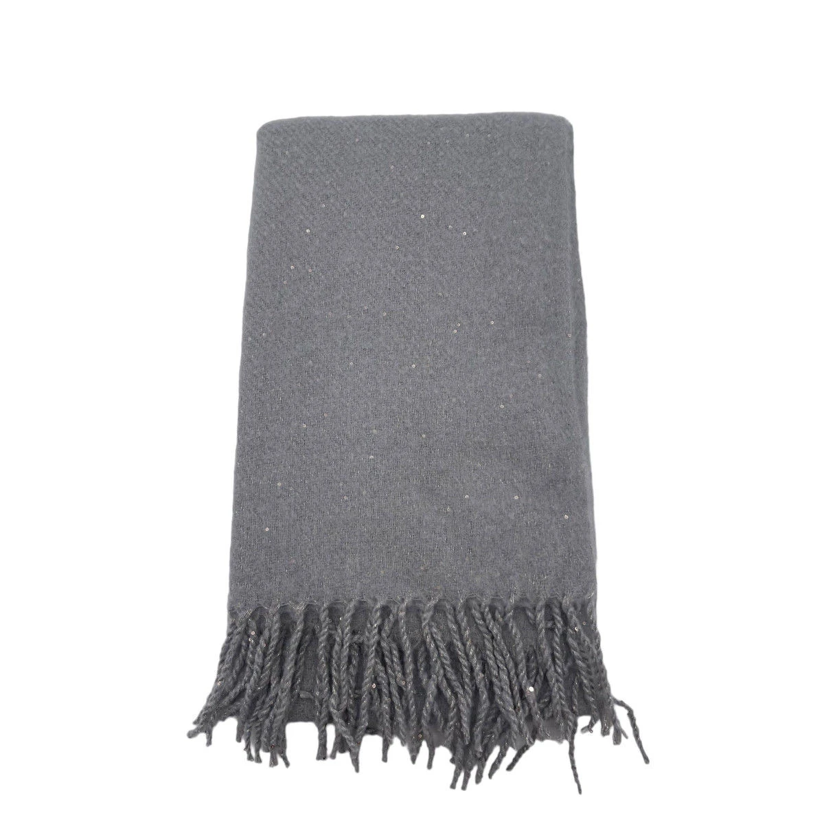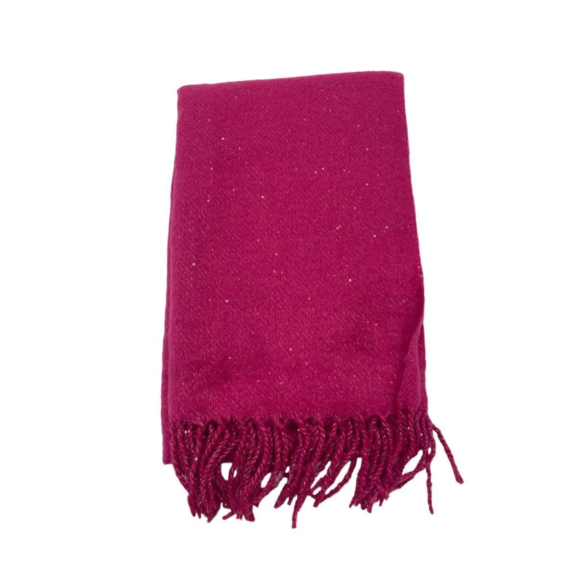 Écharpe rectangulaire tissée en maille à base de 80% d’acrylique et 20% de laine.