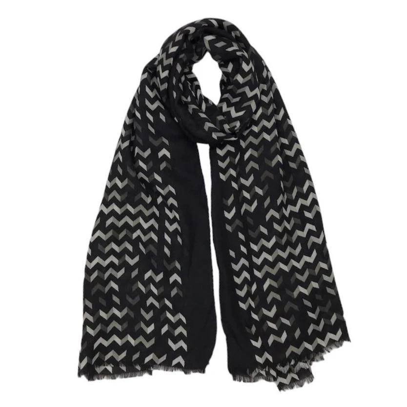 Doté d’un imprimé géométrique avec une bordure à fines franges.