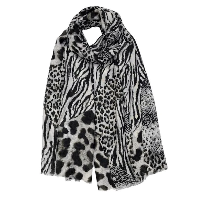 Écharpe réalisée dans un tissu de polyester et coton à la tendance animal.