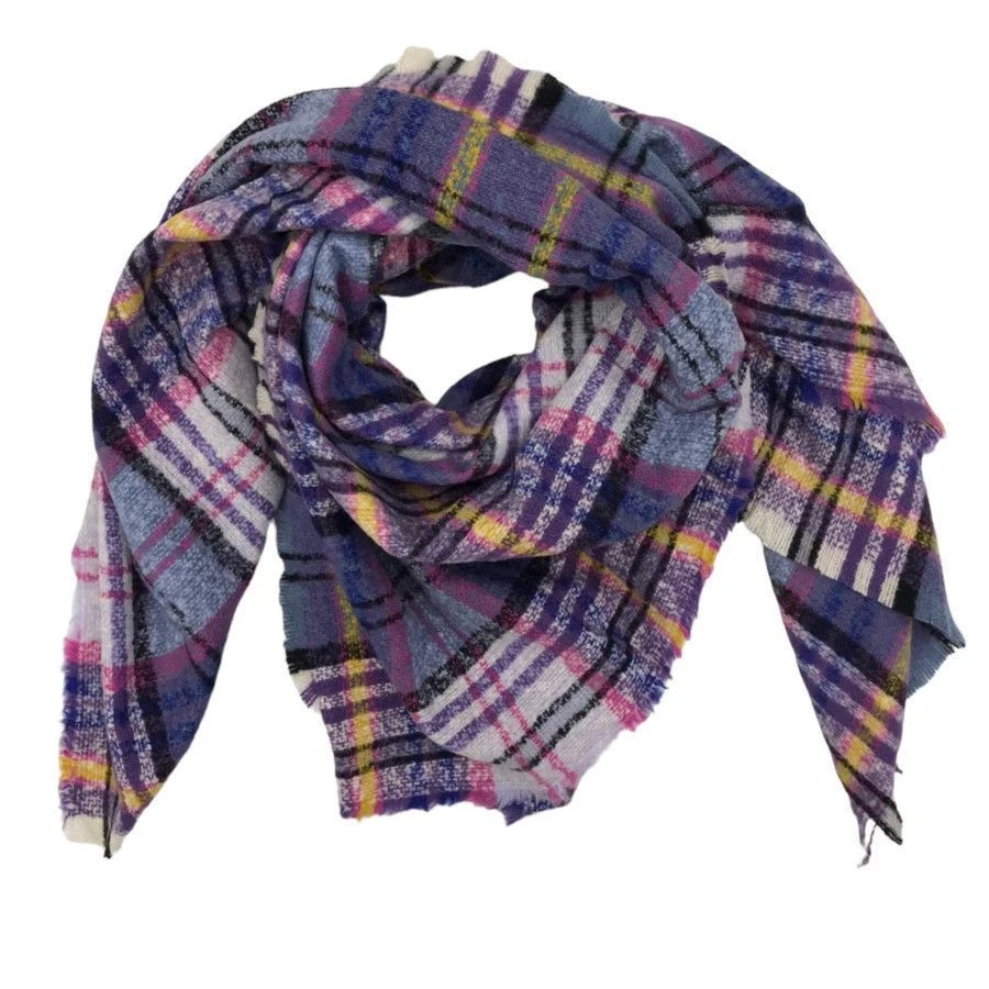 Écharpe Bleu Pétrole En Laine Mélangée à Carreaux Et Franges