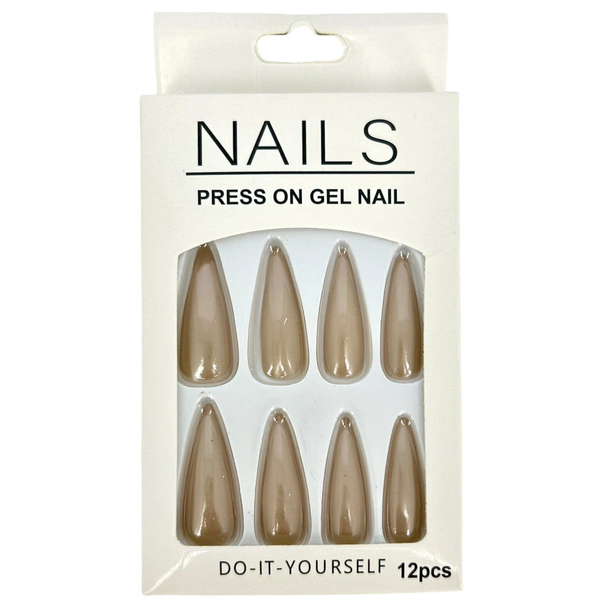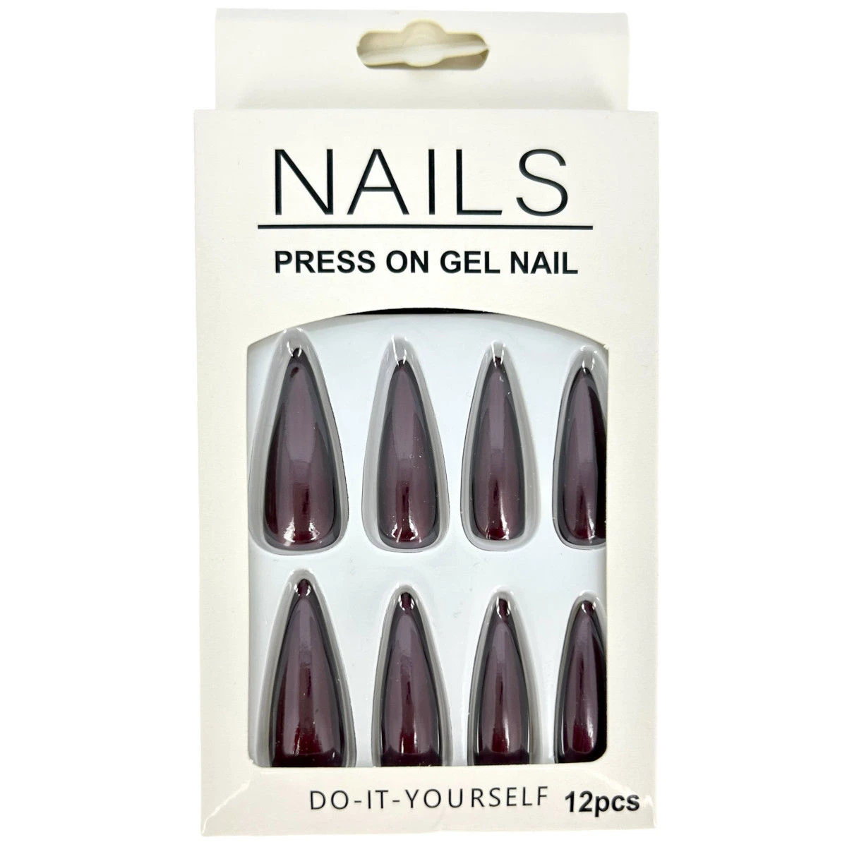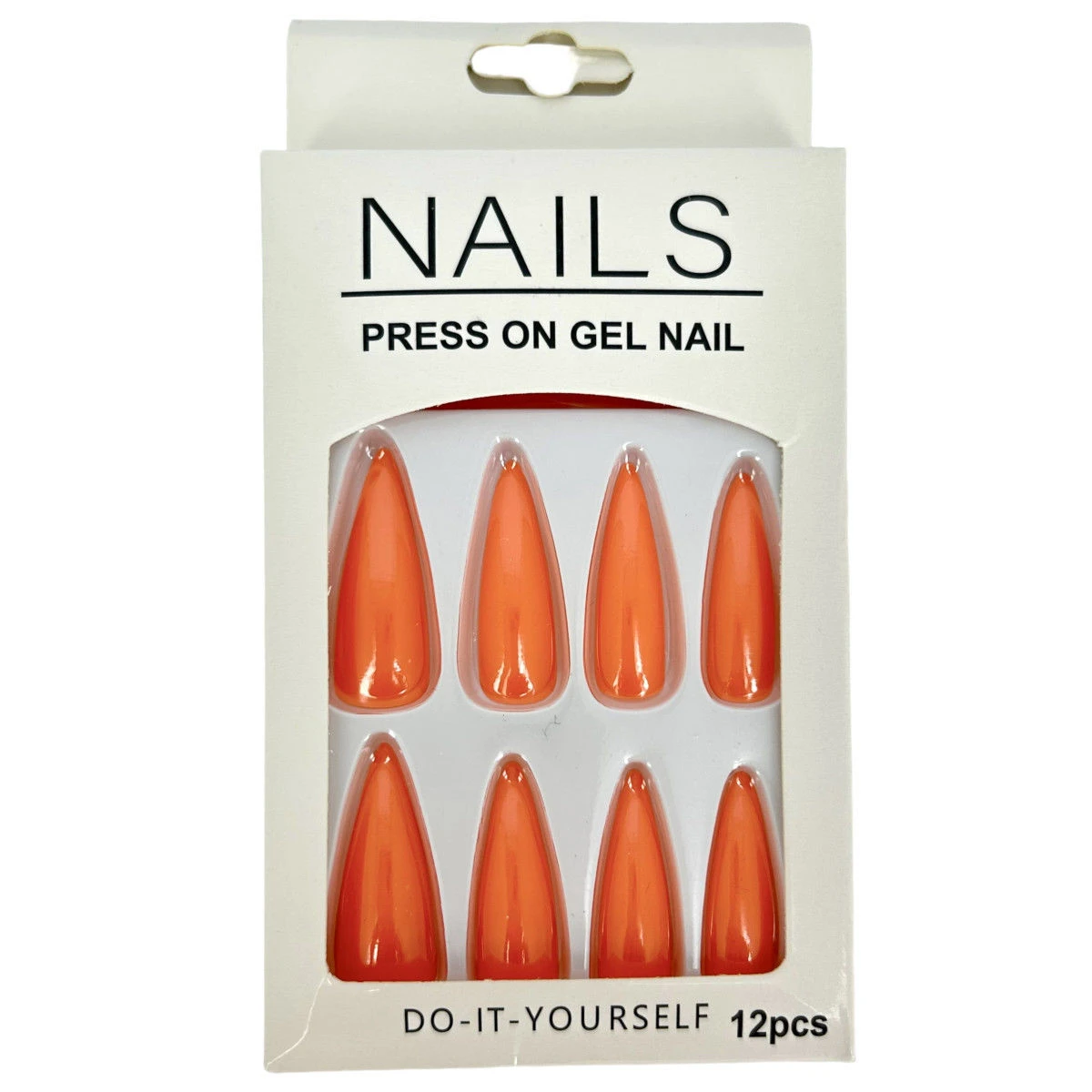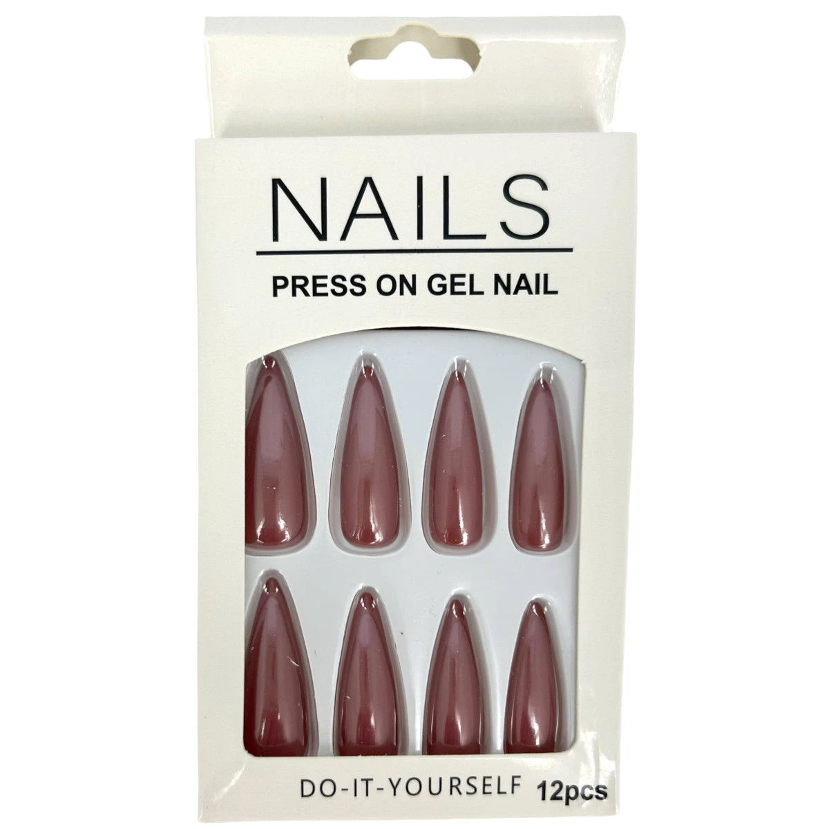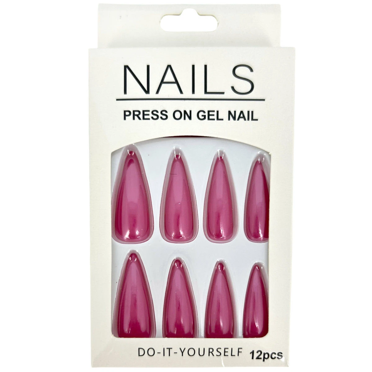Pack de 12 faux ongles long en plastique de couleur unie effet métallisé.