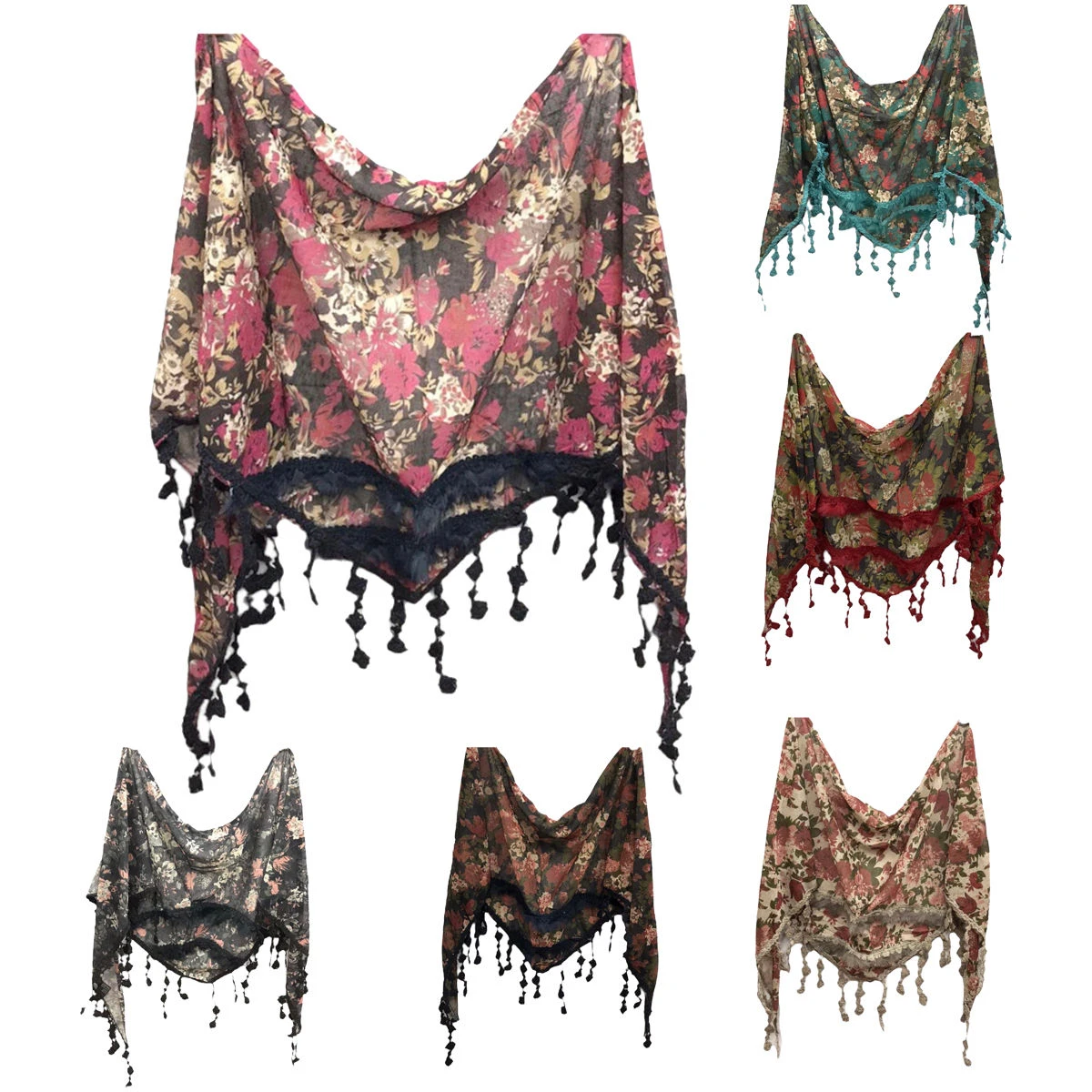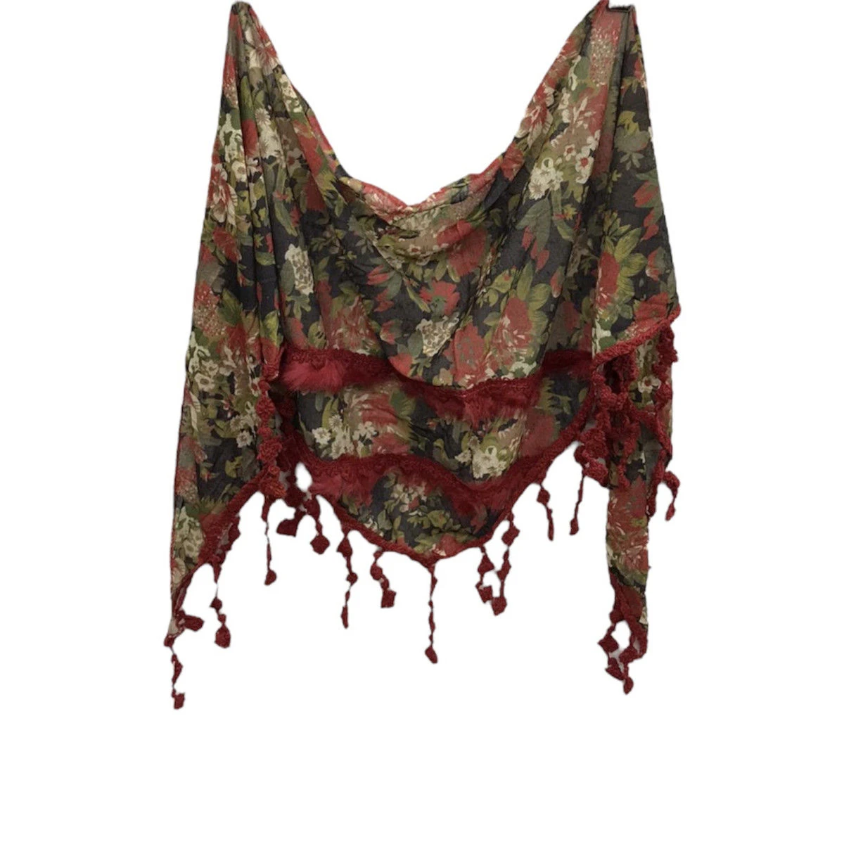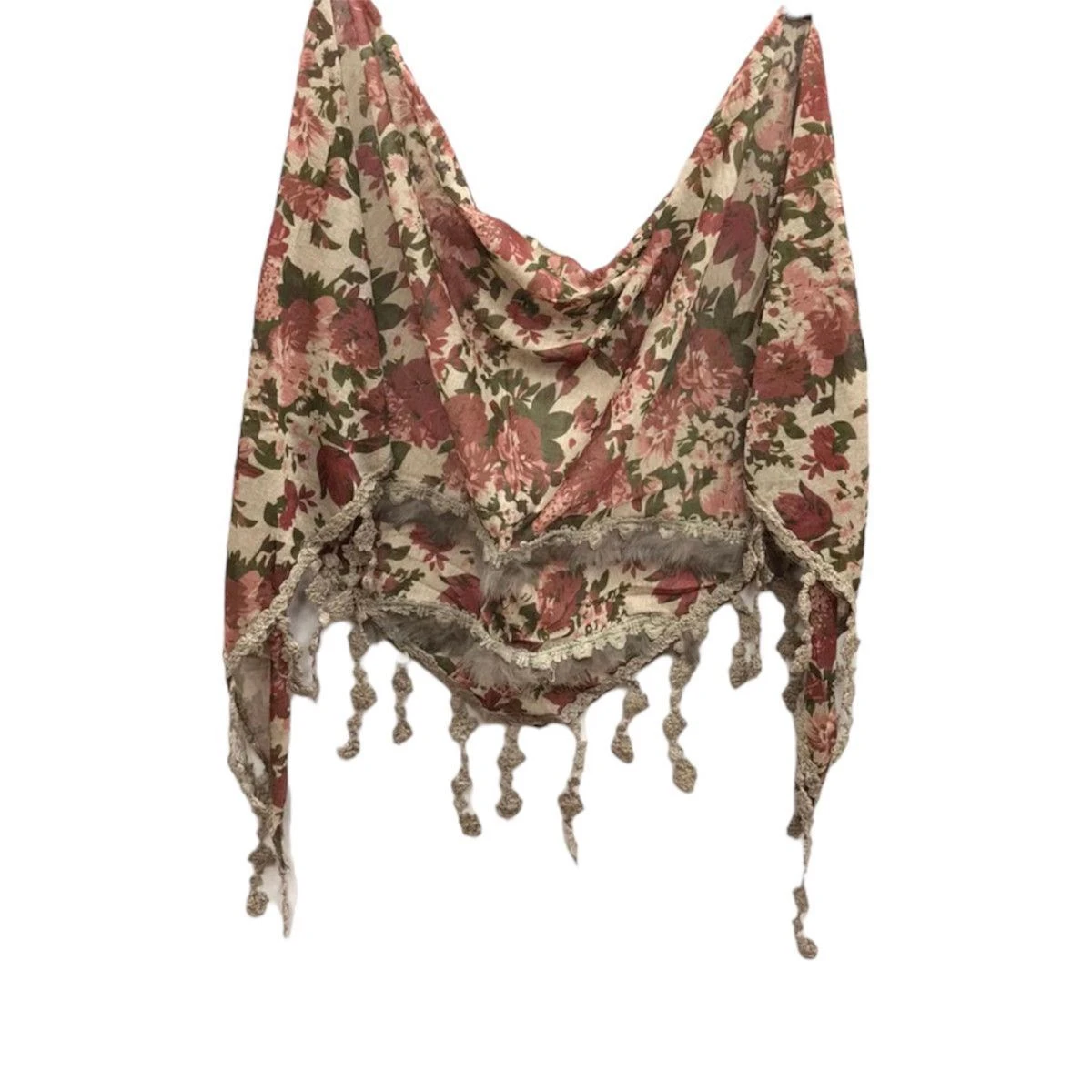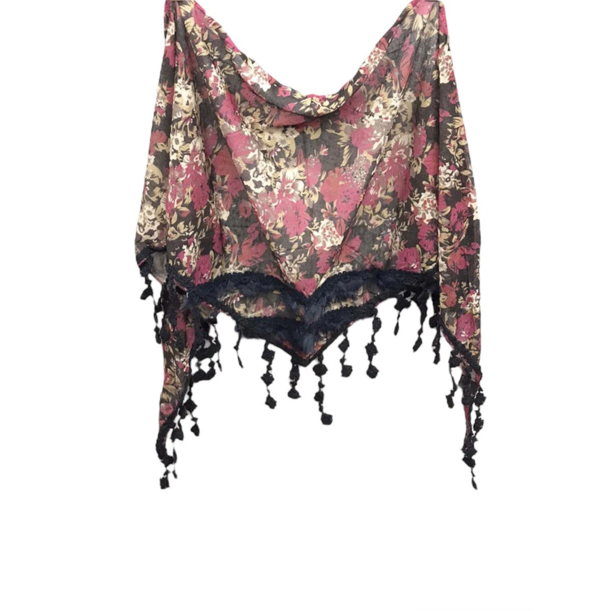 Foulard triangulaire en acrylique avec imprimé floral sur l’ensemble.
