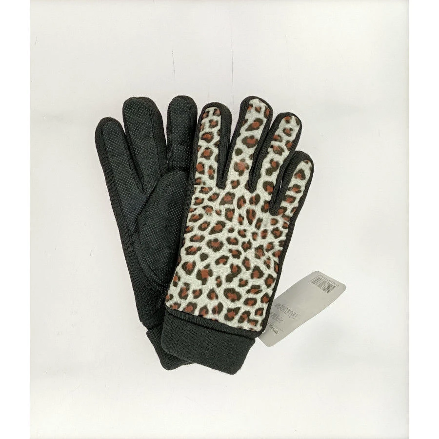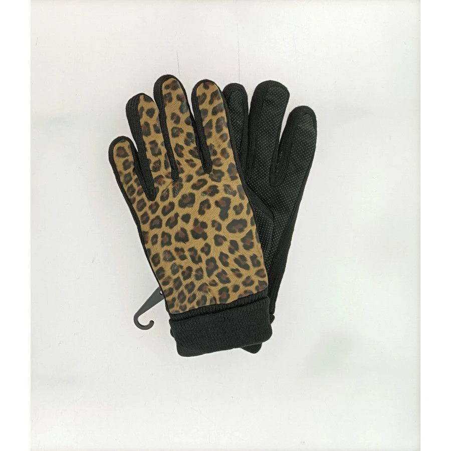 Gants faits dans une matière douce rehaussée d’un imprimé animalier en léopard.