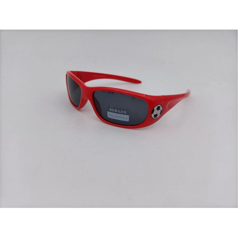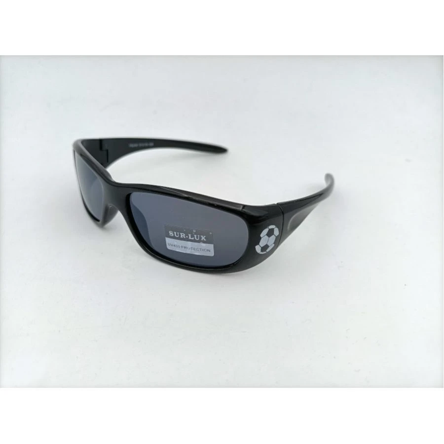 Lunettes de soleil à monture rectangulaires en plastique embellie par un ballon de football sur les côtés.