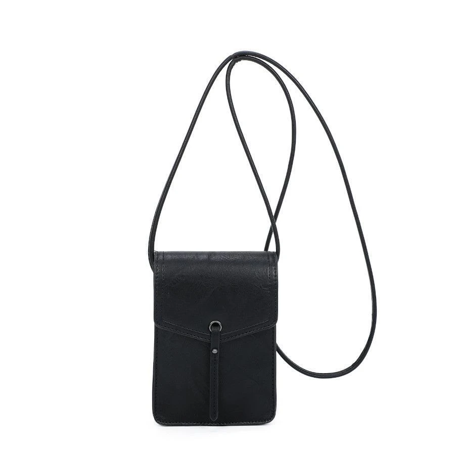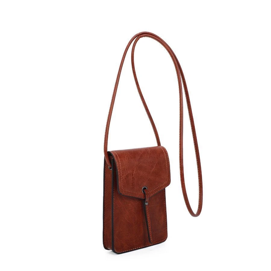 Mini pochette à fine bandoulière confectionnée en simili cuir de haute qualité.