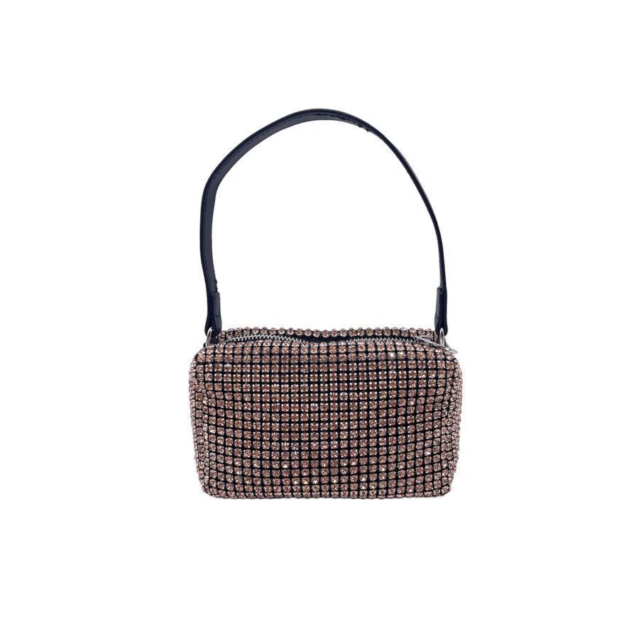 Petit sac rectangulaire dans un textile agrémenté de cristaux aspect diamants.