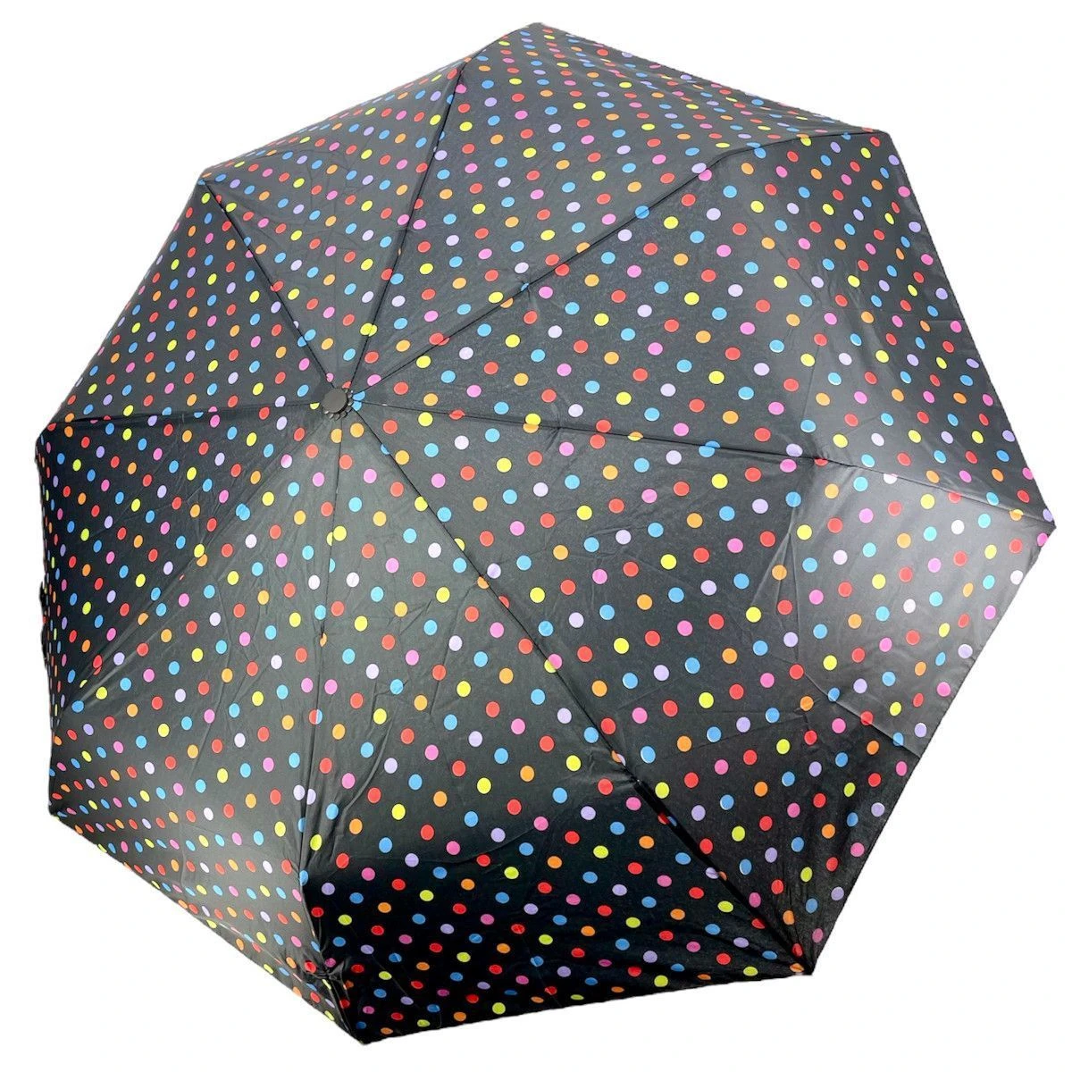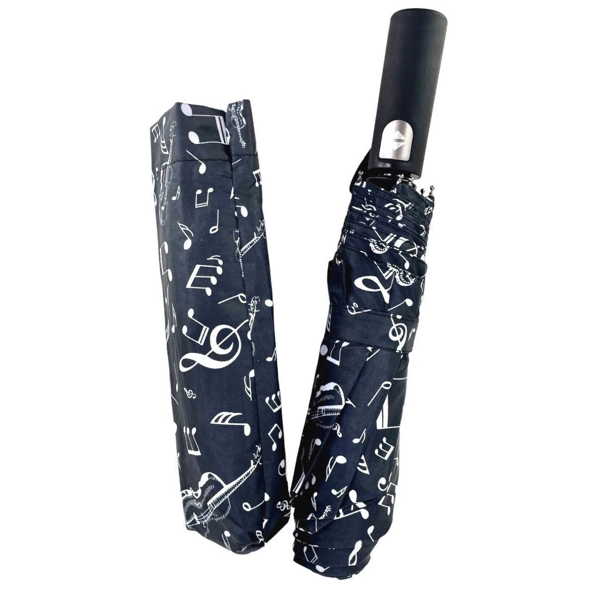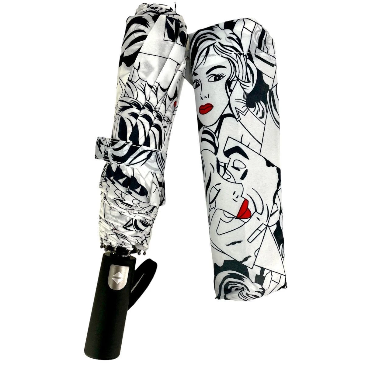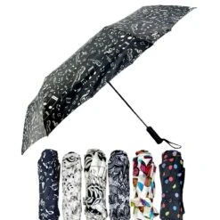 Parapluie pliant en tissu imperméable 100% polyester, agrémenté d’un joli motif.