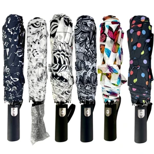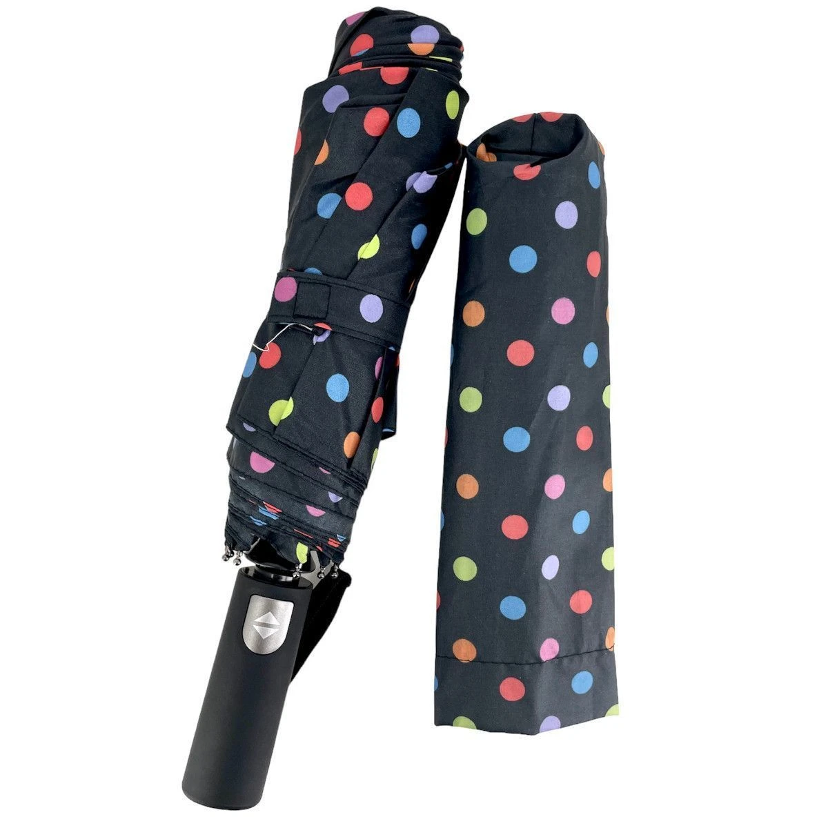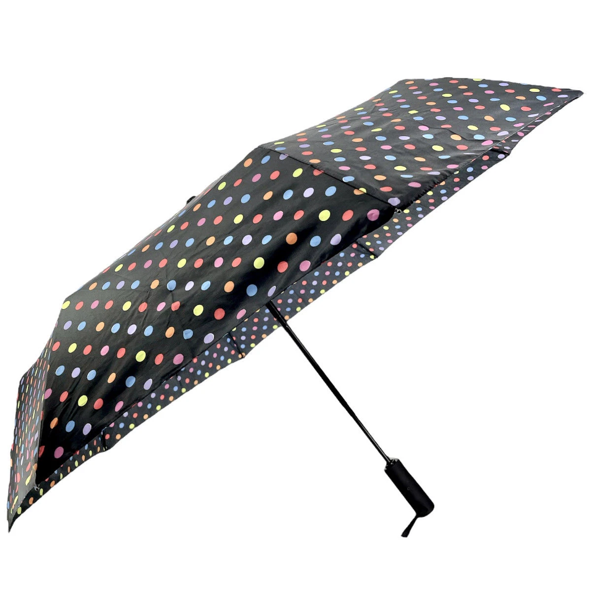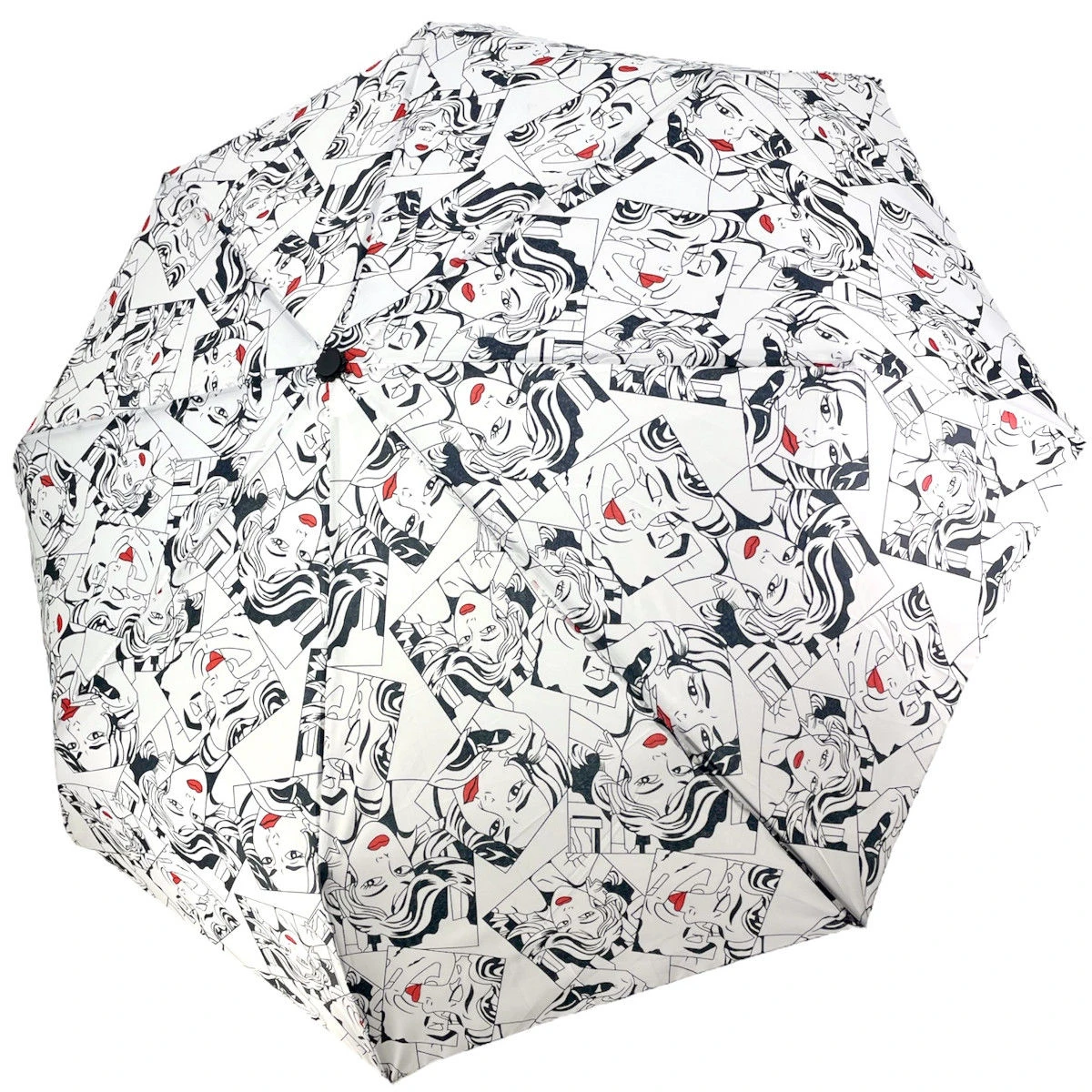 Parapluie pliant en tissu imperméable 100% polyester, agrémenté d’un joli motif.