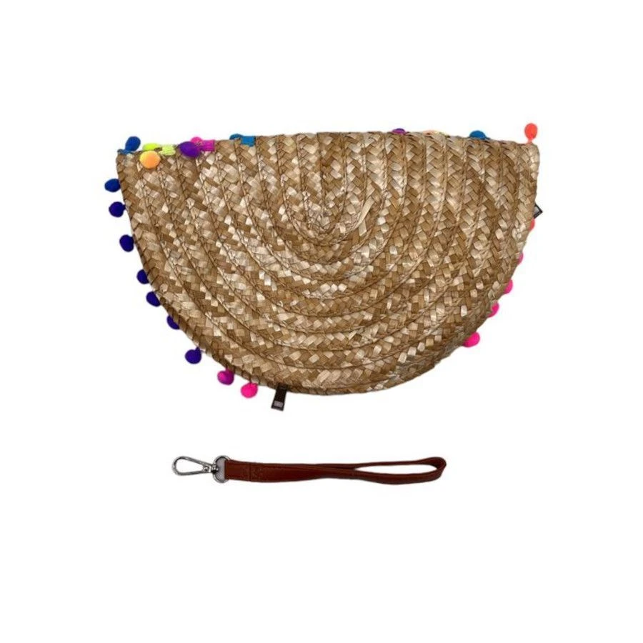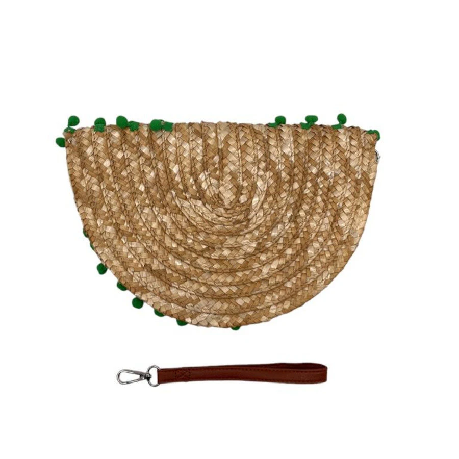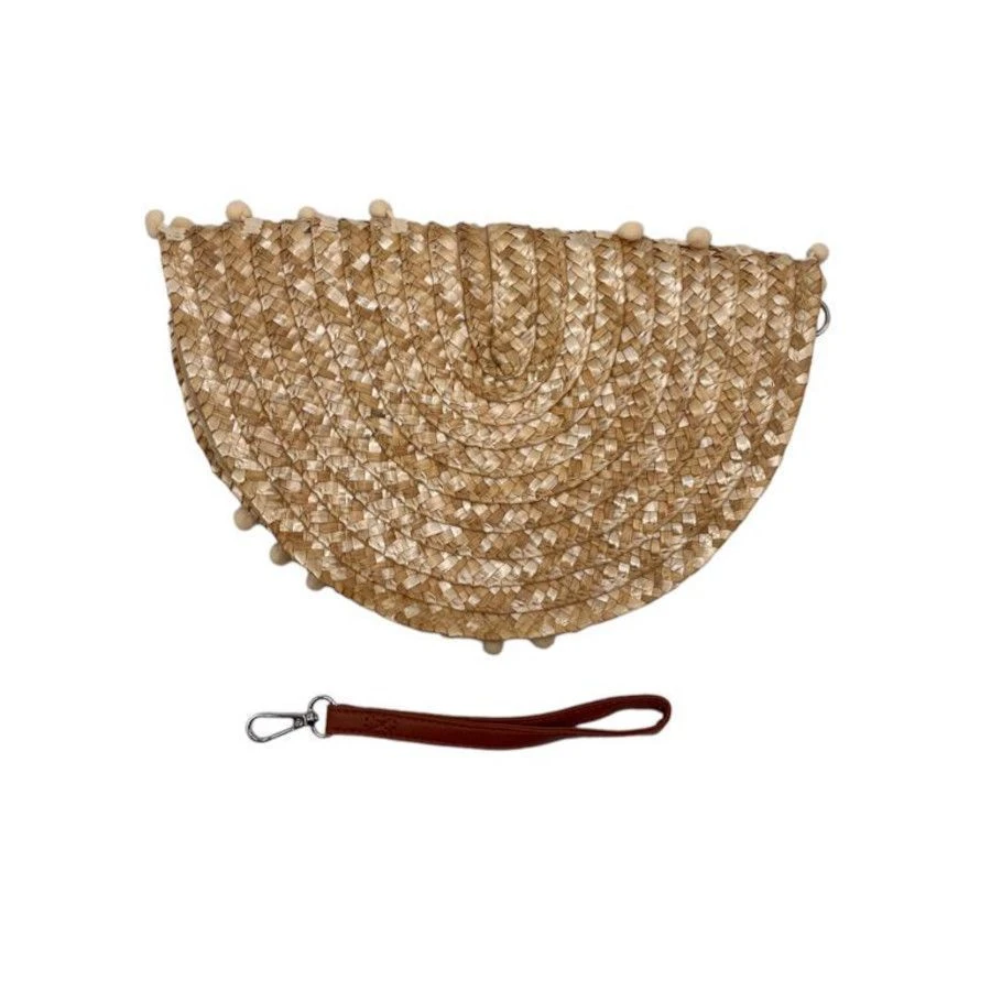 Sac pochette format demi-lune tissé à la main dans une matière naturelle en paille.