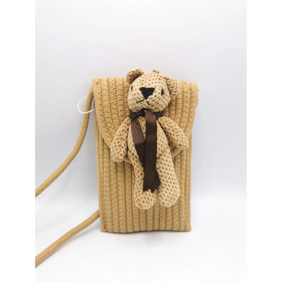 Mini sac forme pochette pour téléphone portable avec motif d’un ourson.