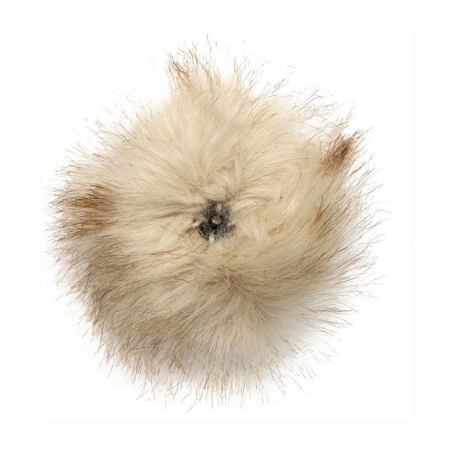 Pompons en fausse fourrure de marmotte avec bouton pression.