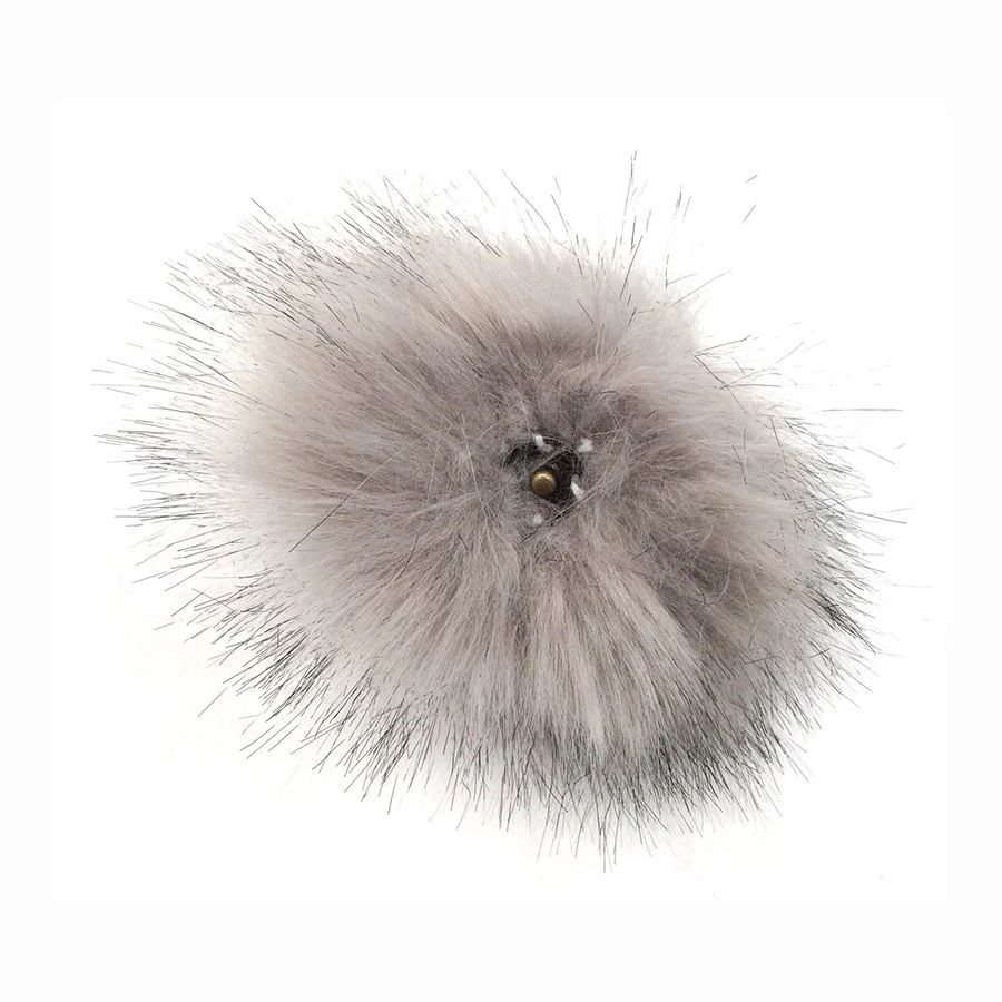Pompons en fausse fourrure de marmotte avec bouton pression.