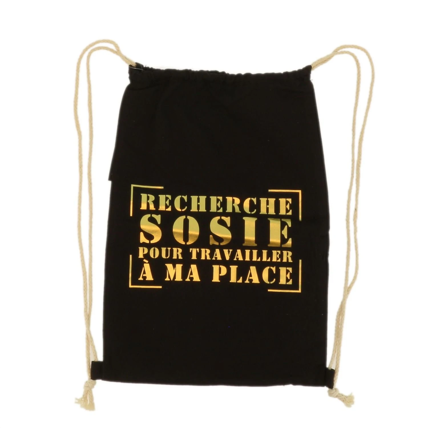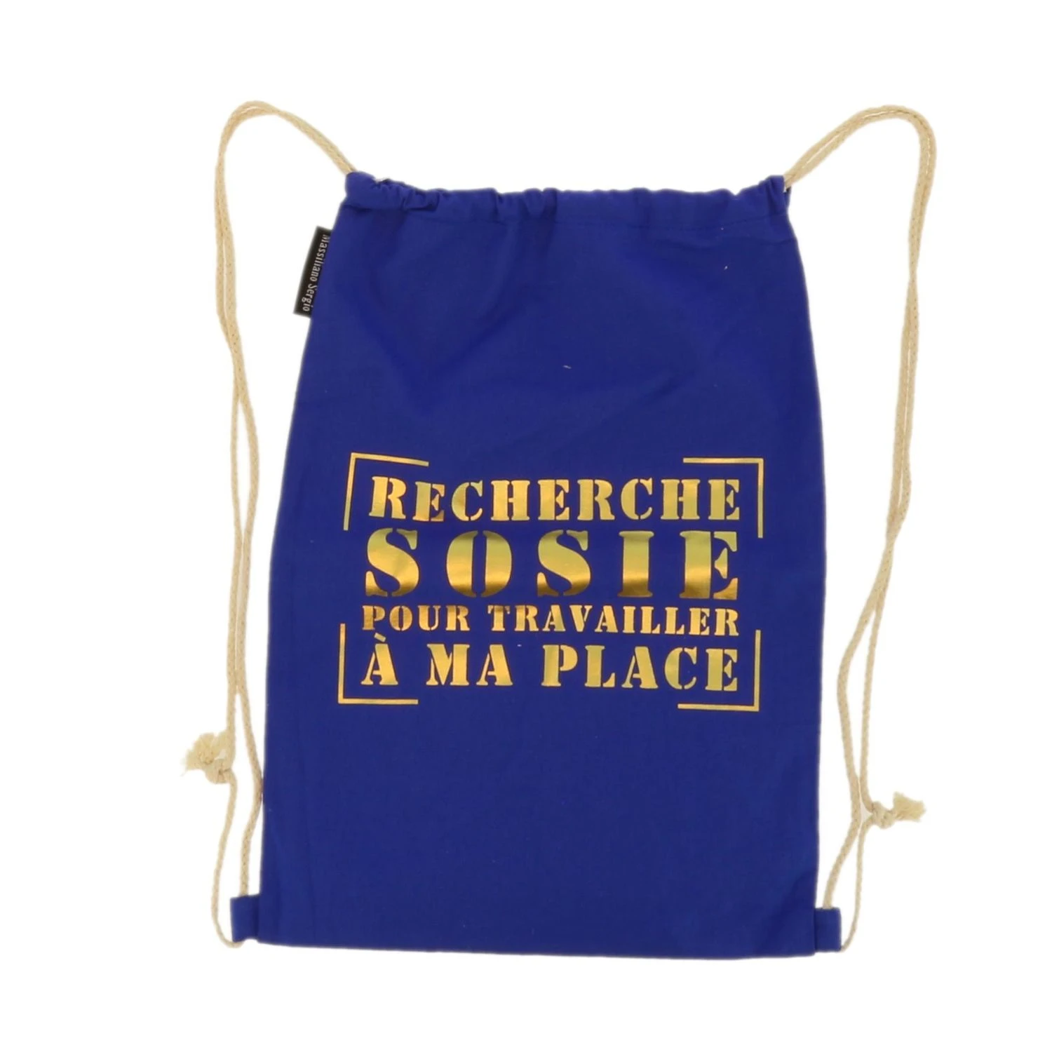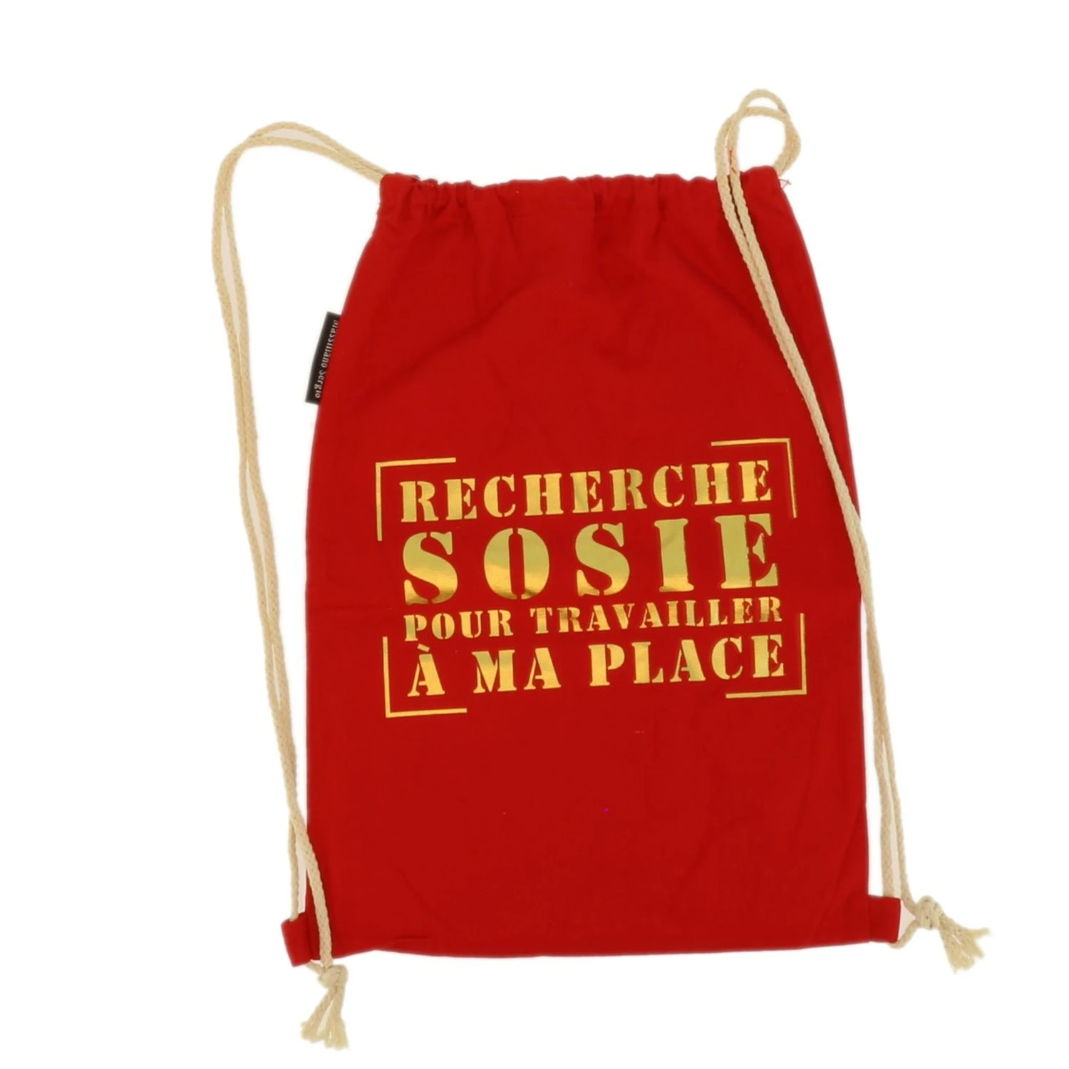 Sac à dos 100% coton «Recherche sosie pour travailler à ma place»