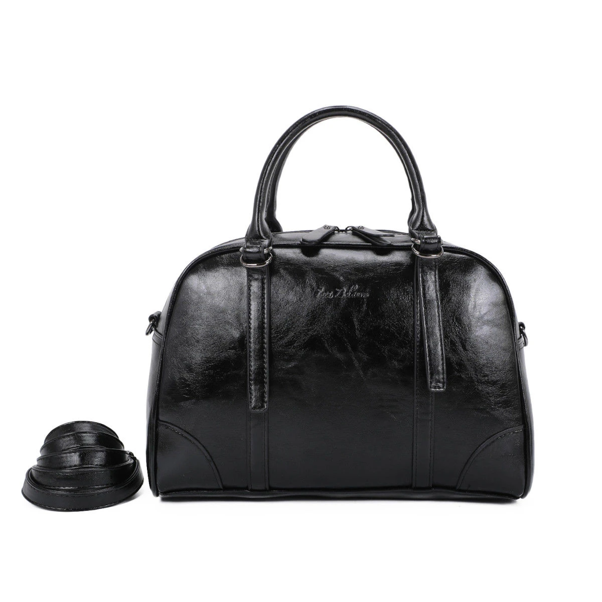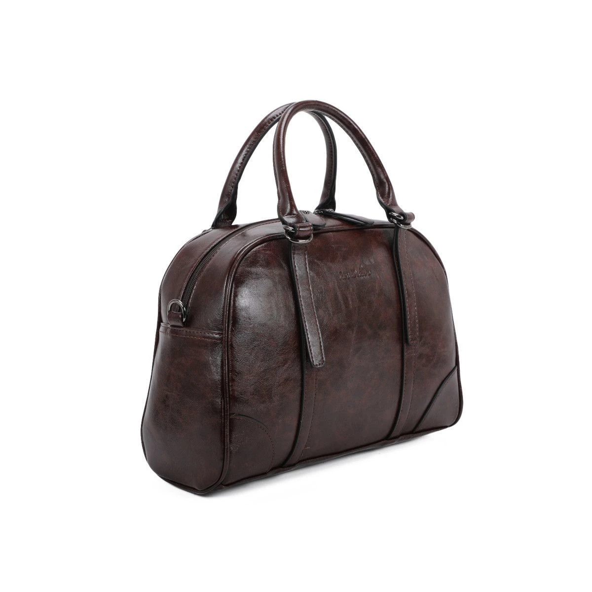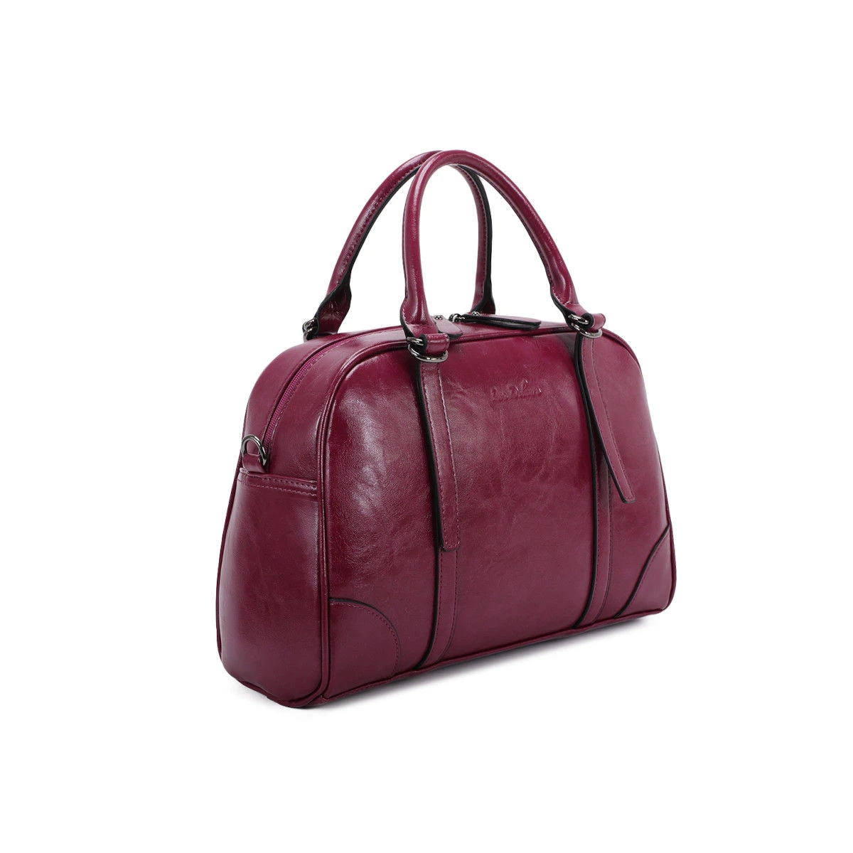 Sac à main de femme confectionné en simili cuir avec deux poignées tubulaires.