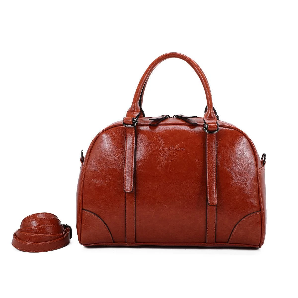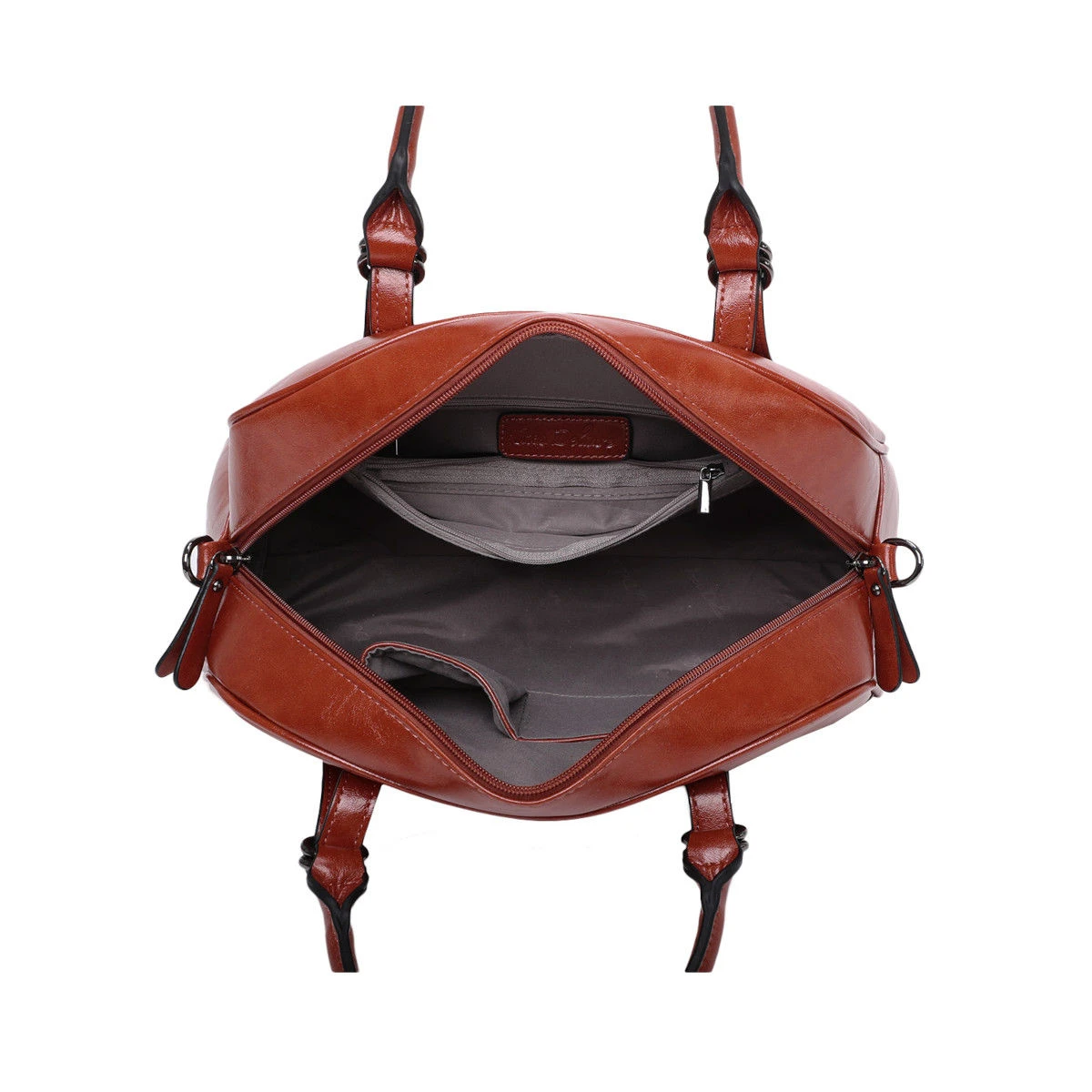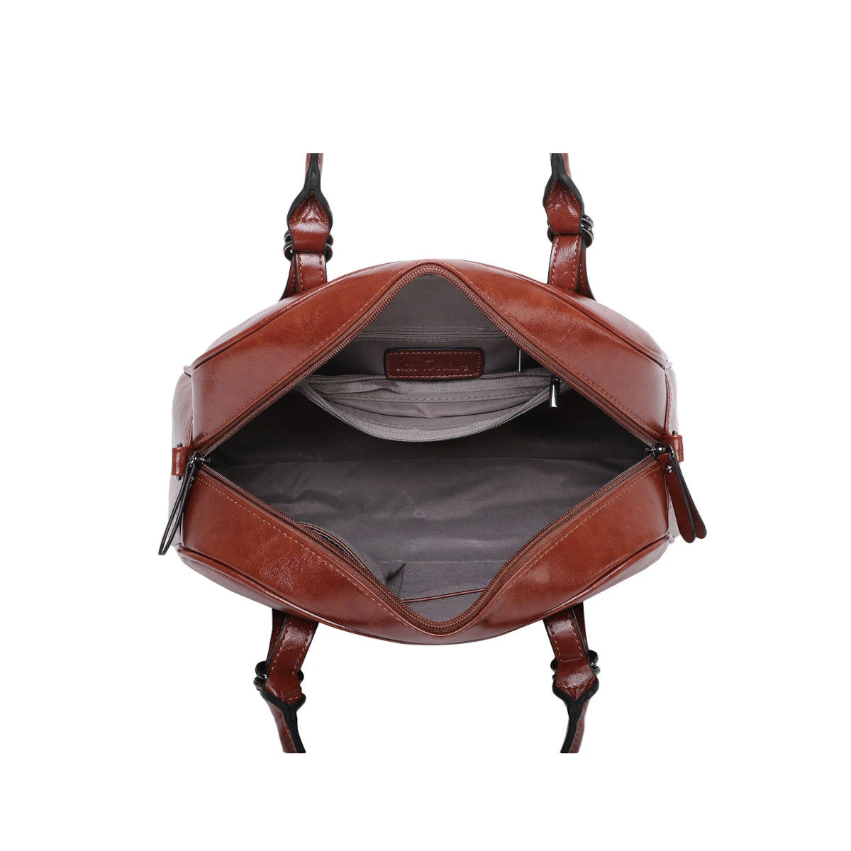 Sac à main de femme confectionné en simili cuir avec deux poignées tubulaires.