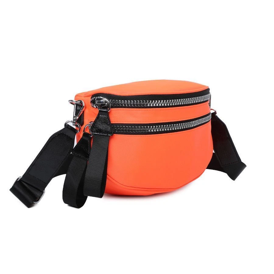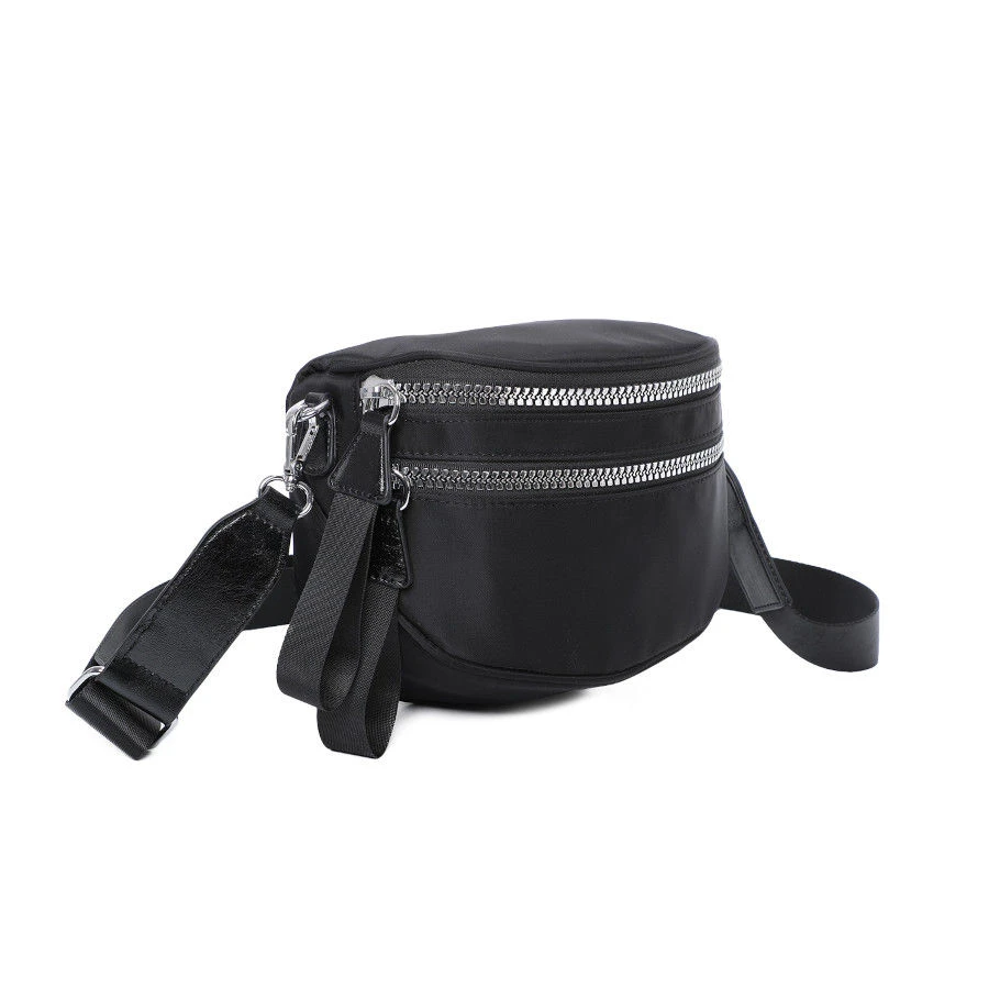 Sac Besace Porté Croisé Effet Bimatière Zippé Et Bride à Boucle Décor