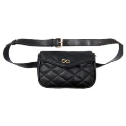 Sac banane bandoulière de forme rectangulaire confectionnée en véritable cuir matelassé.