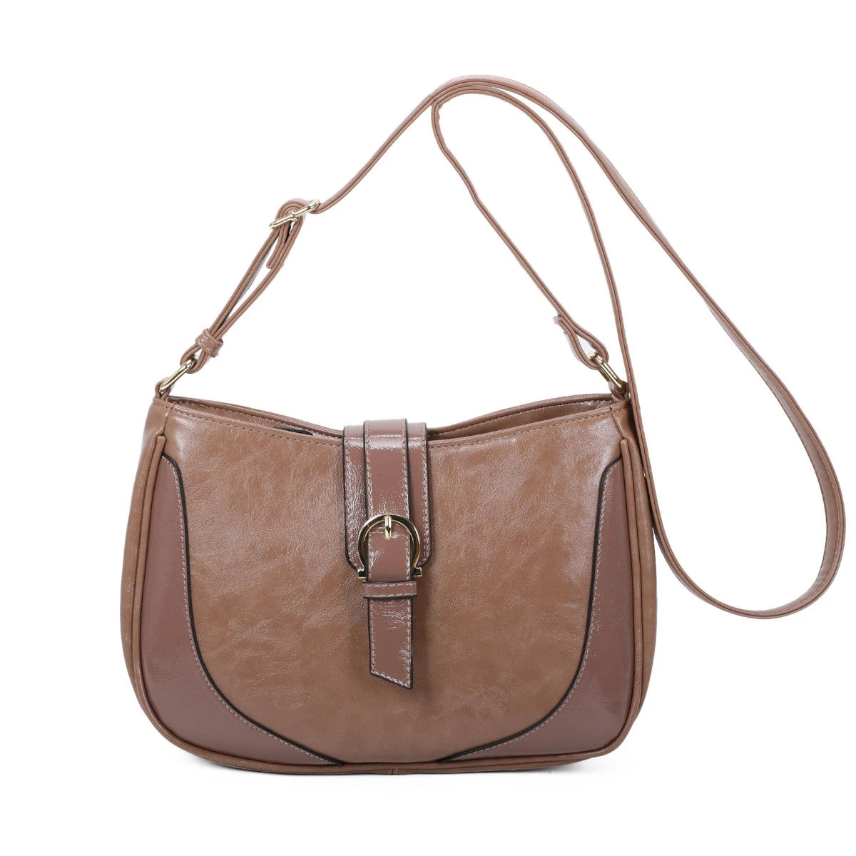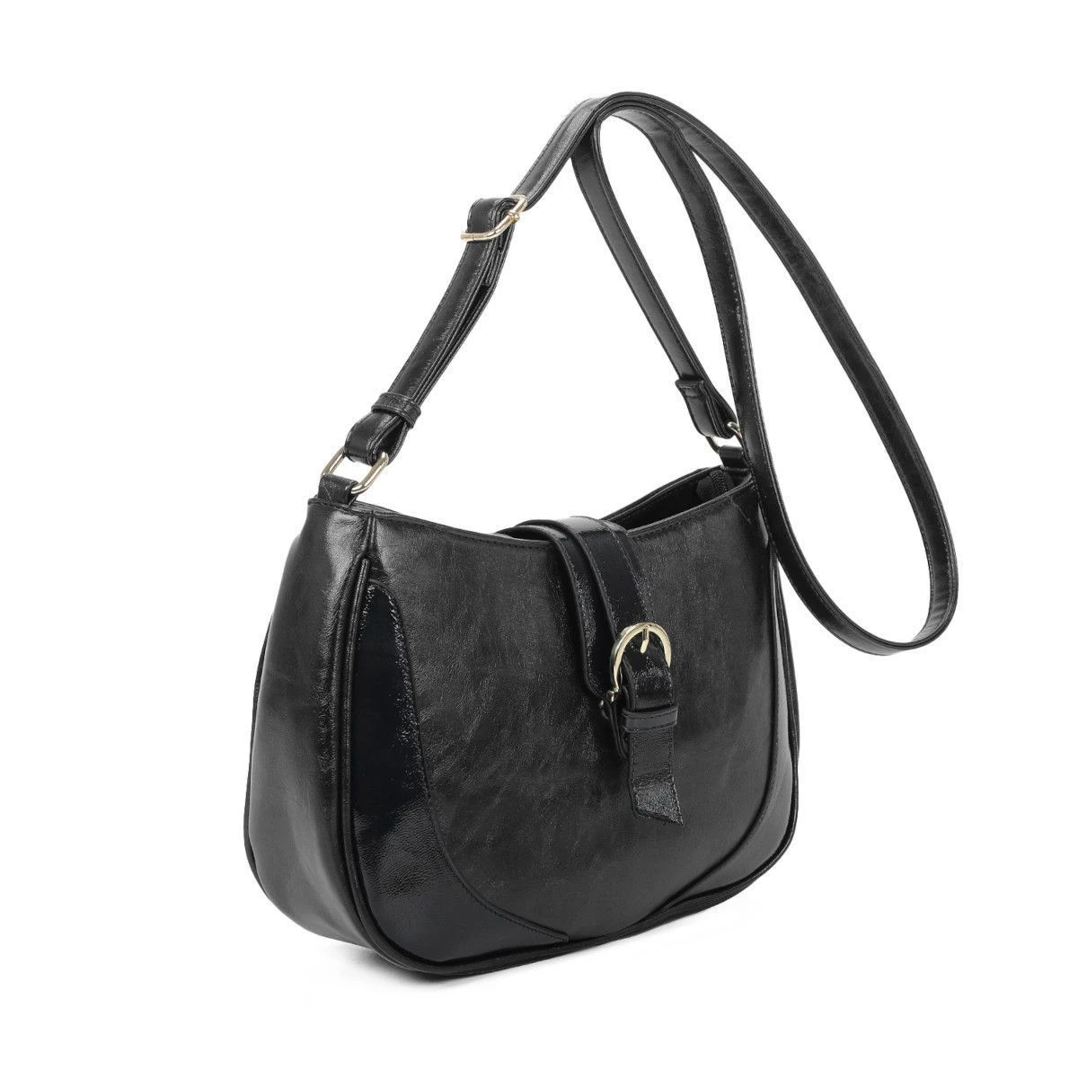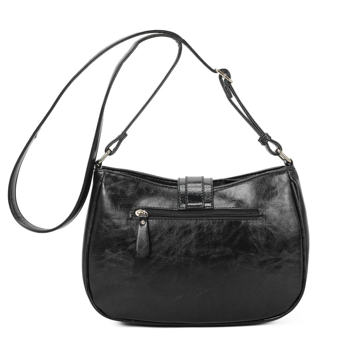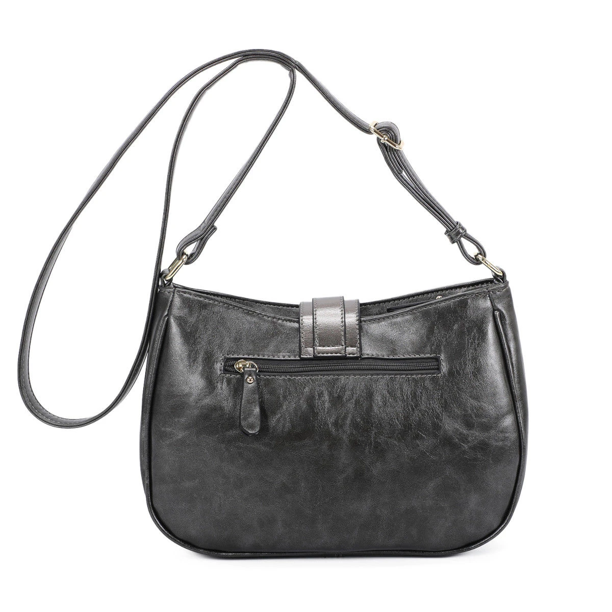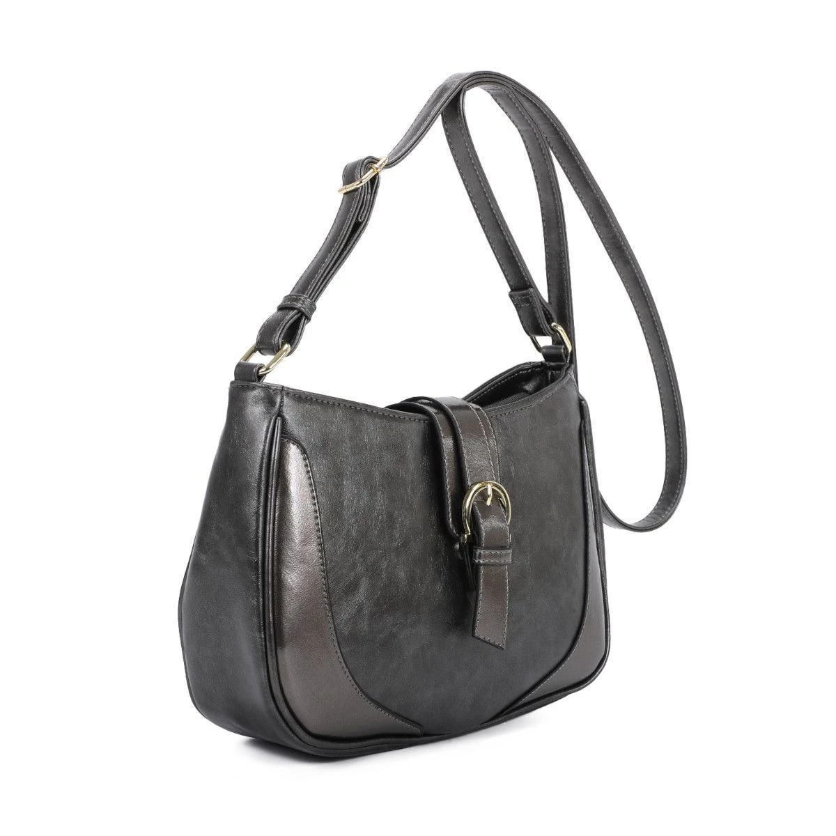 Sac bandoulière femme confectionné en simili cuir avec une doublure en tissu.