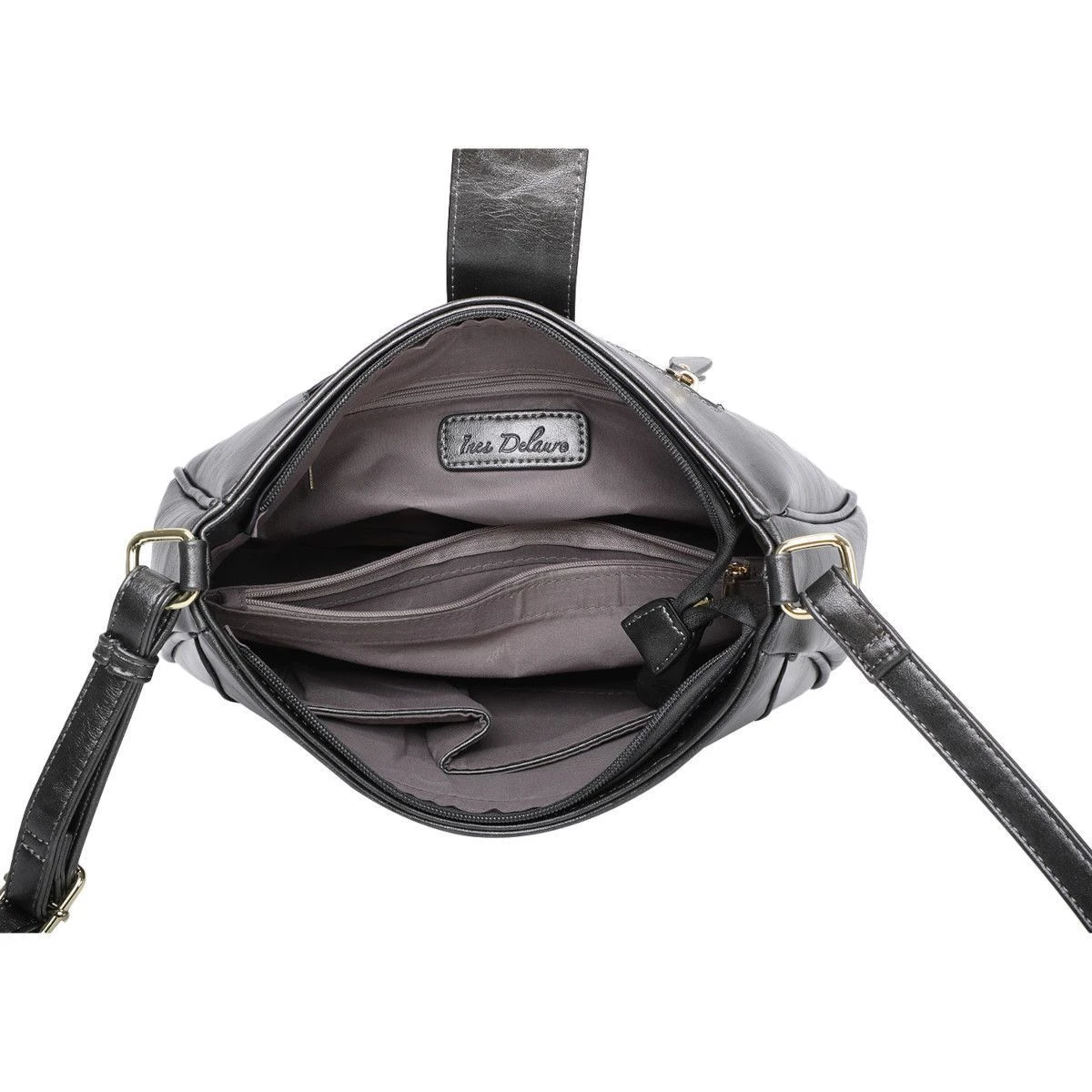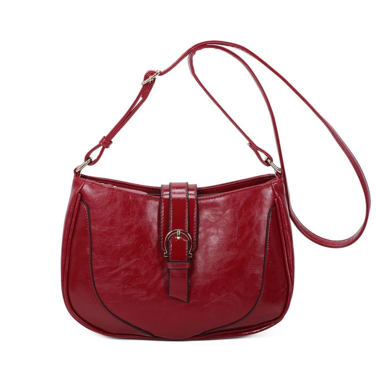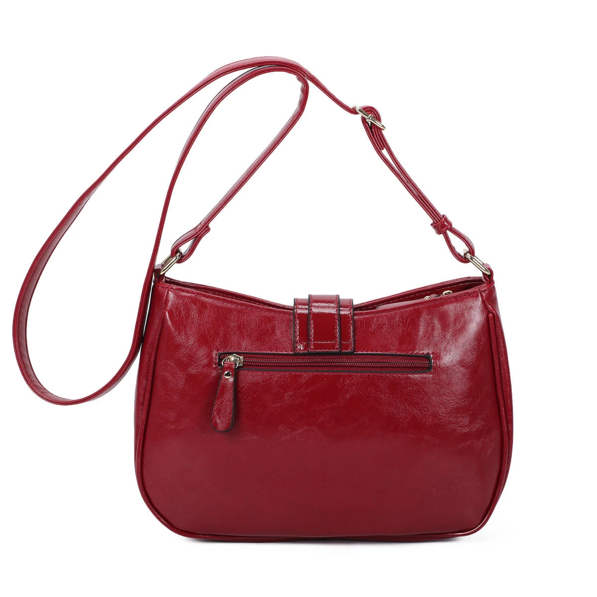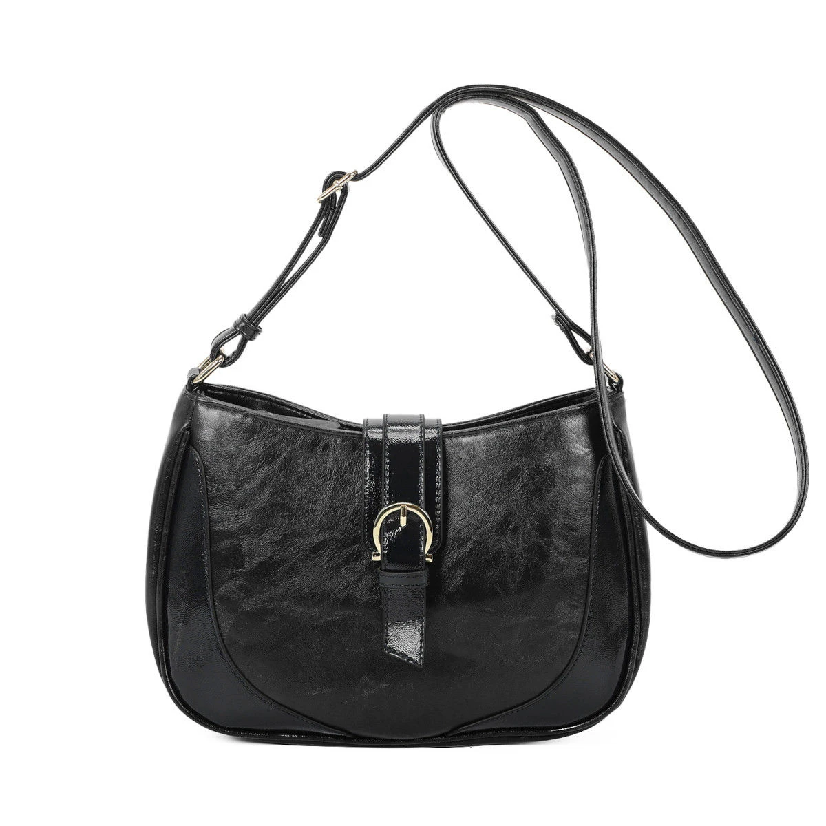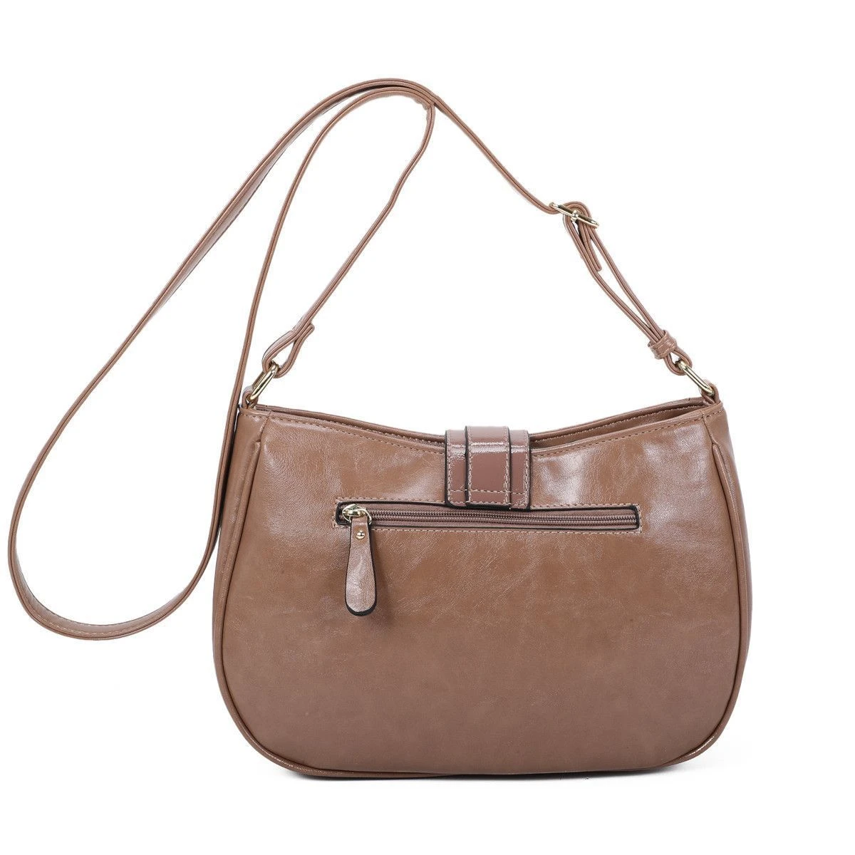 Sac bandoulière femme confectionné en simili cuir avec une doublure en tissu.