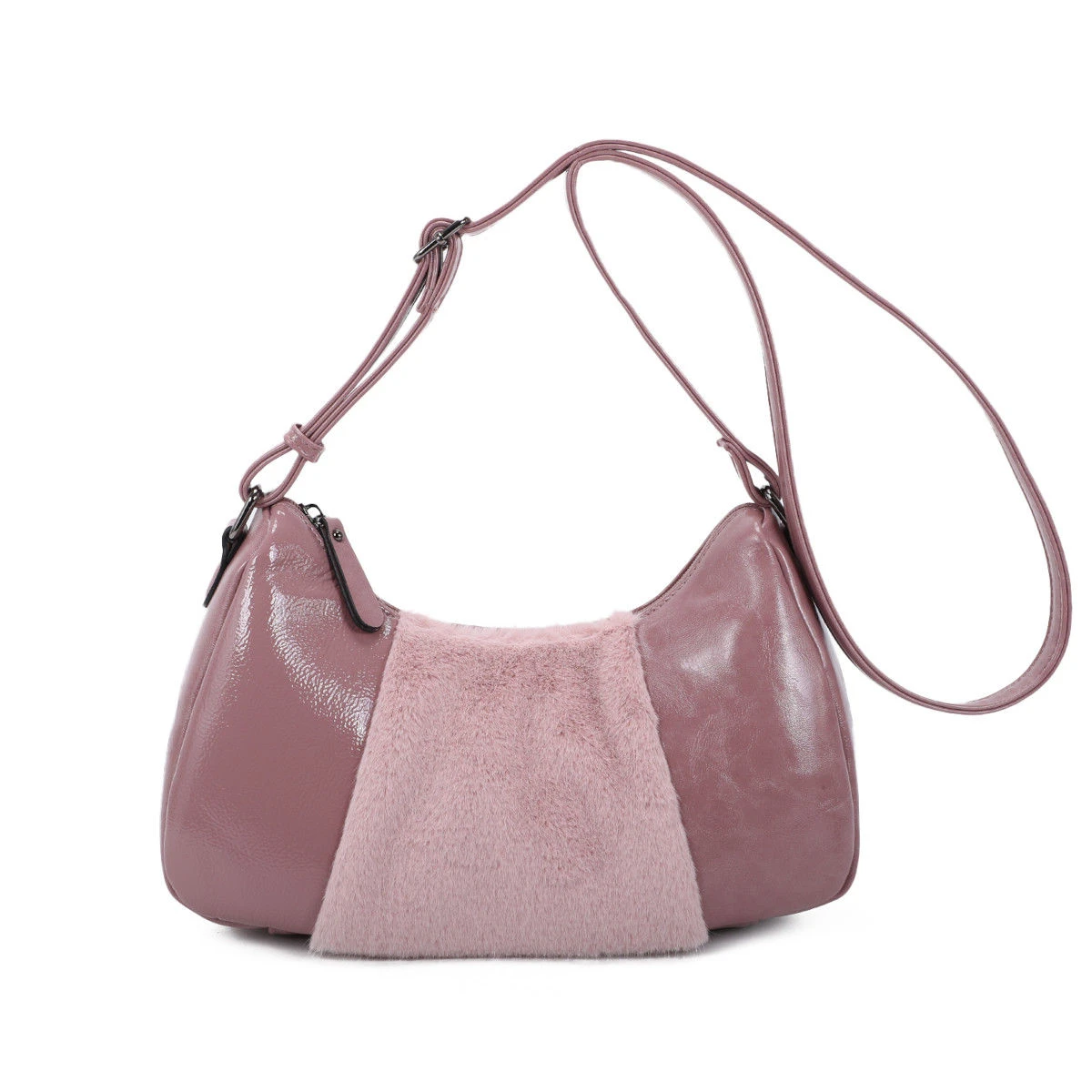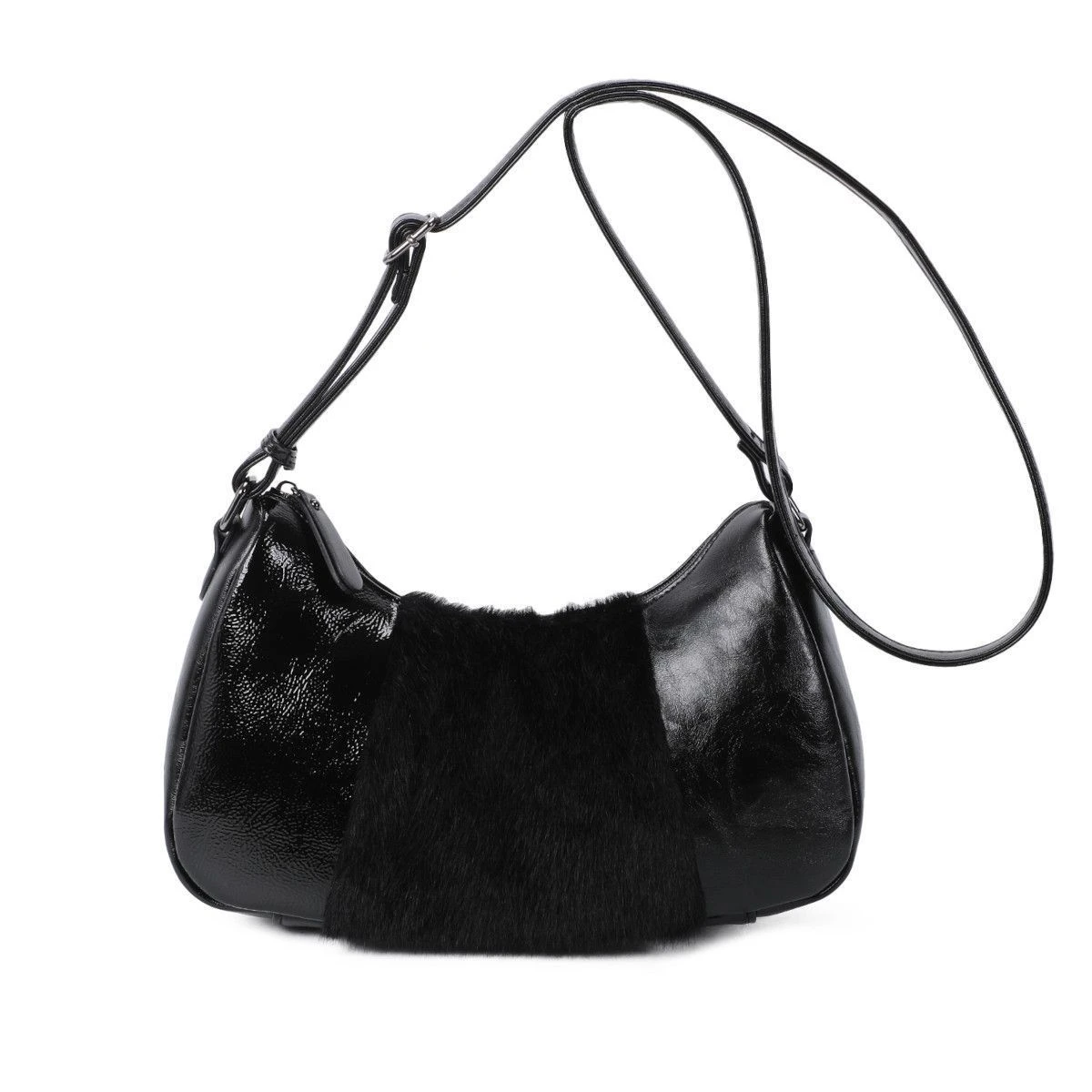 Sac en bandoulière fabriqué avec un mélange de matériaux synthétique.