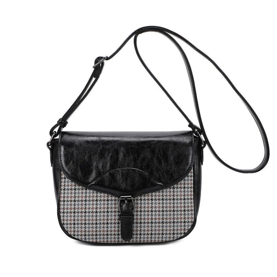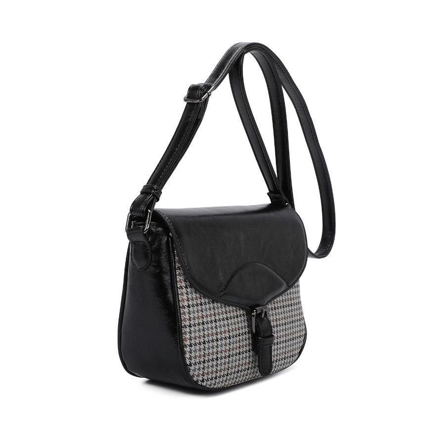 Sac Besace Porté Croisé Effet Bimatière Zippé Et Bride à Boucle Décor