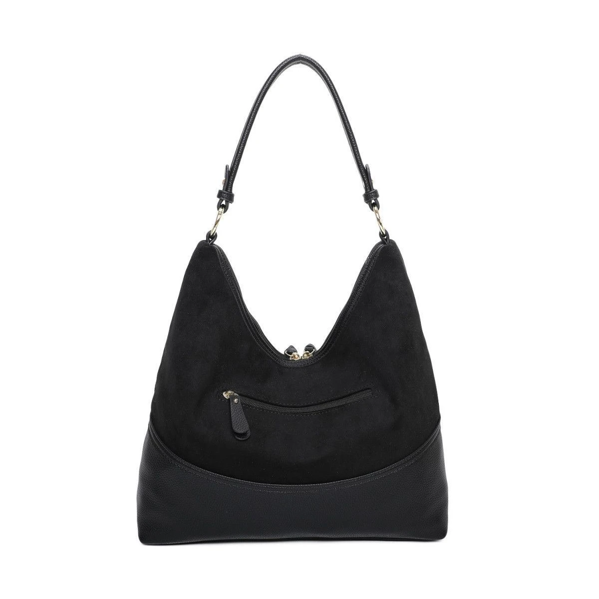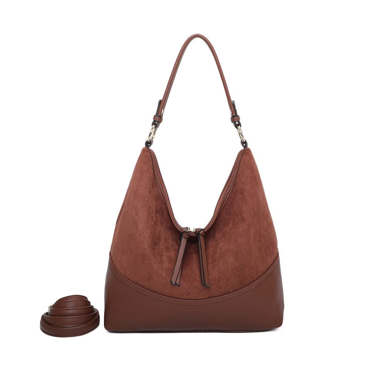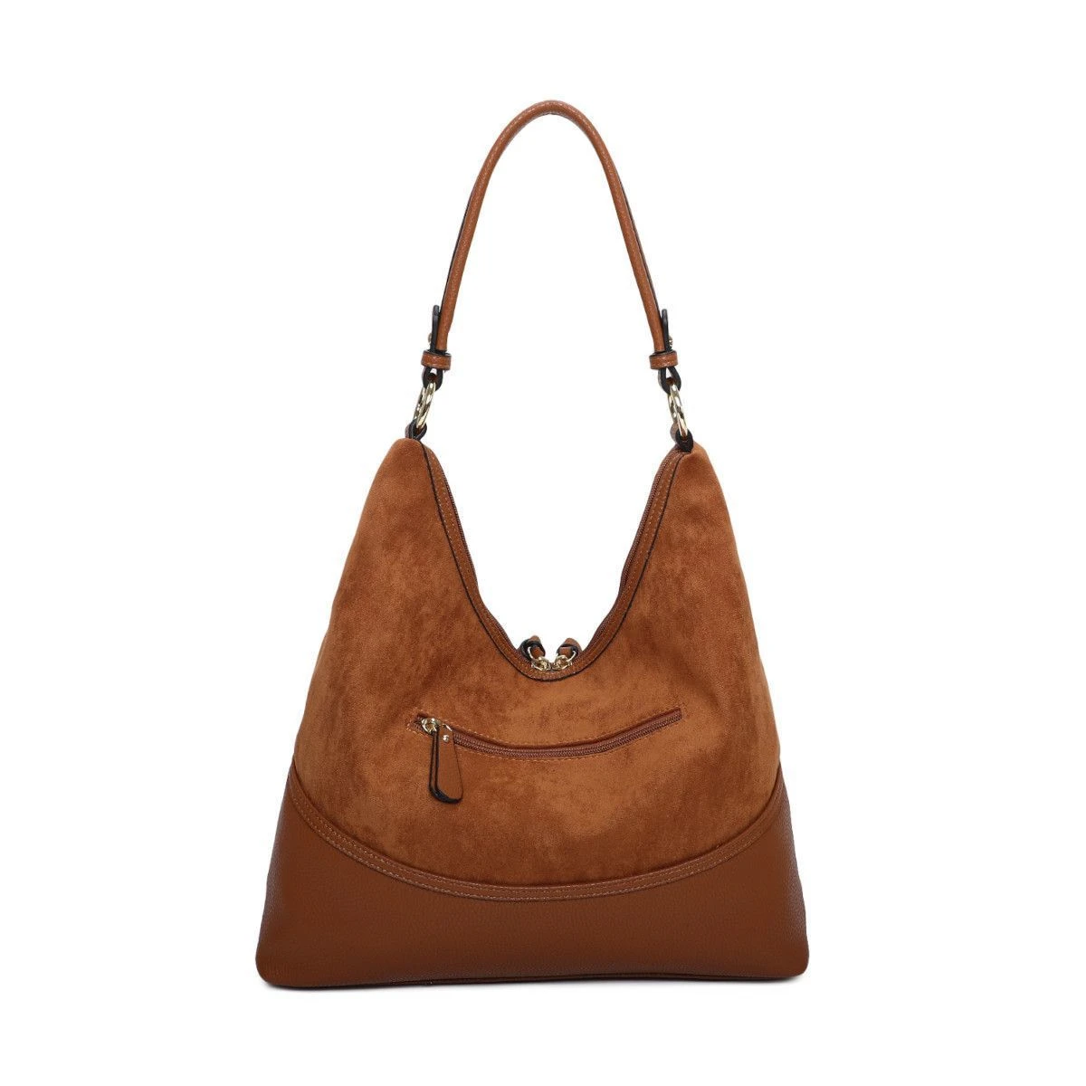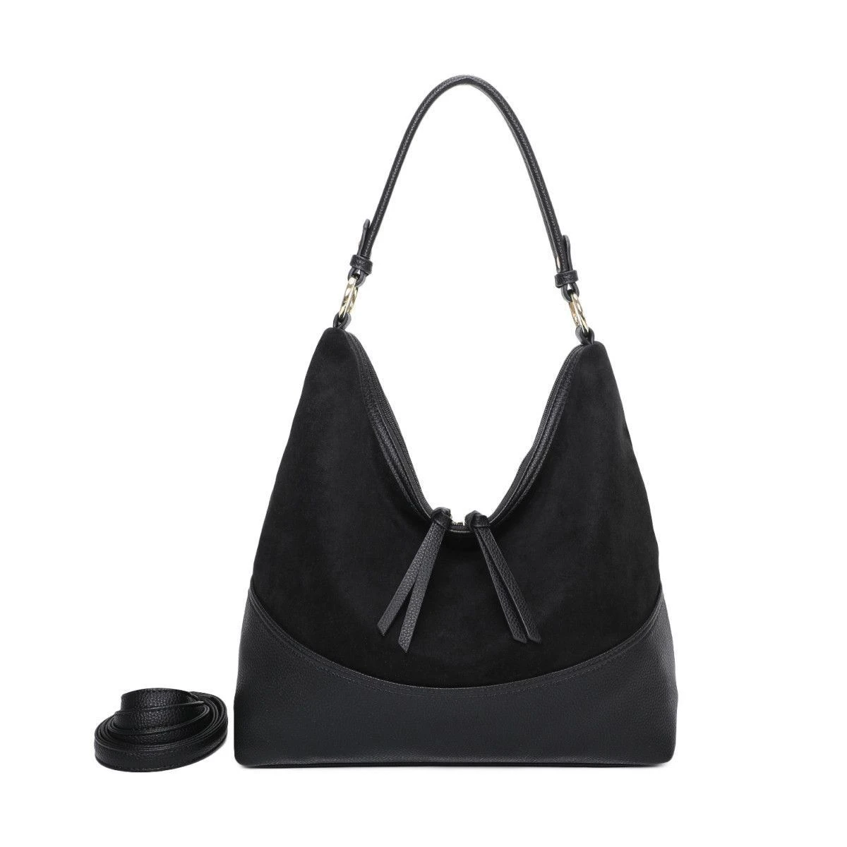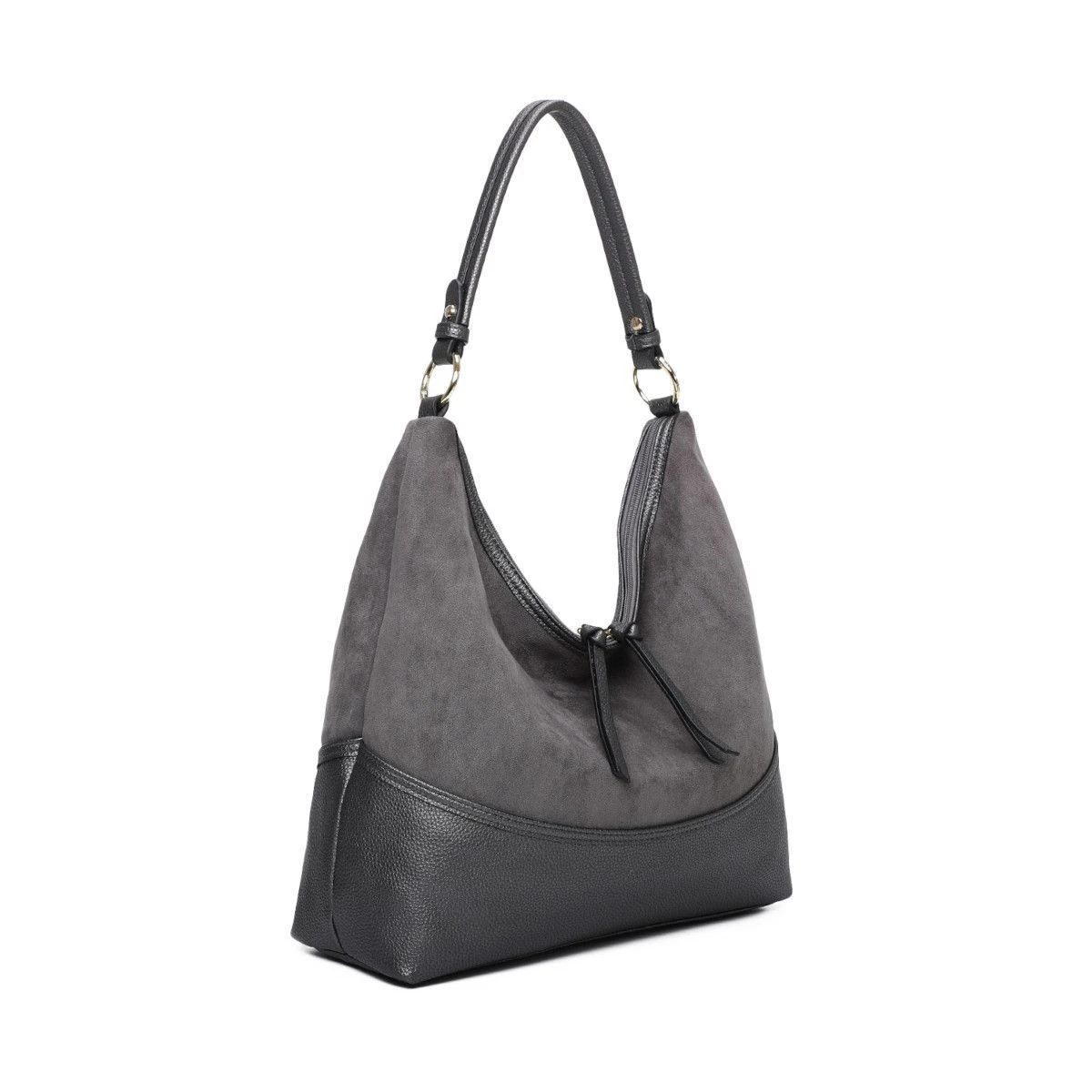 Sac cabas avec un design bimatière confectionné en faux suède et imitation cuir.