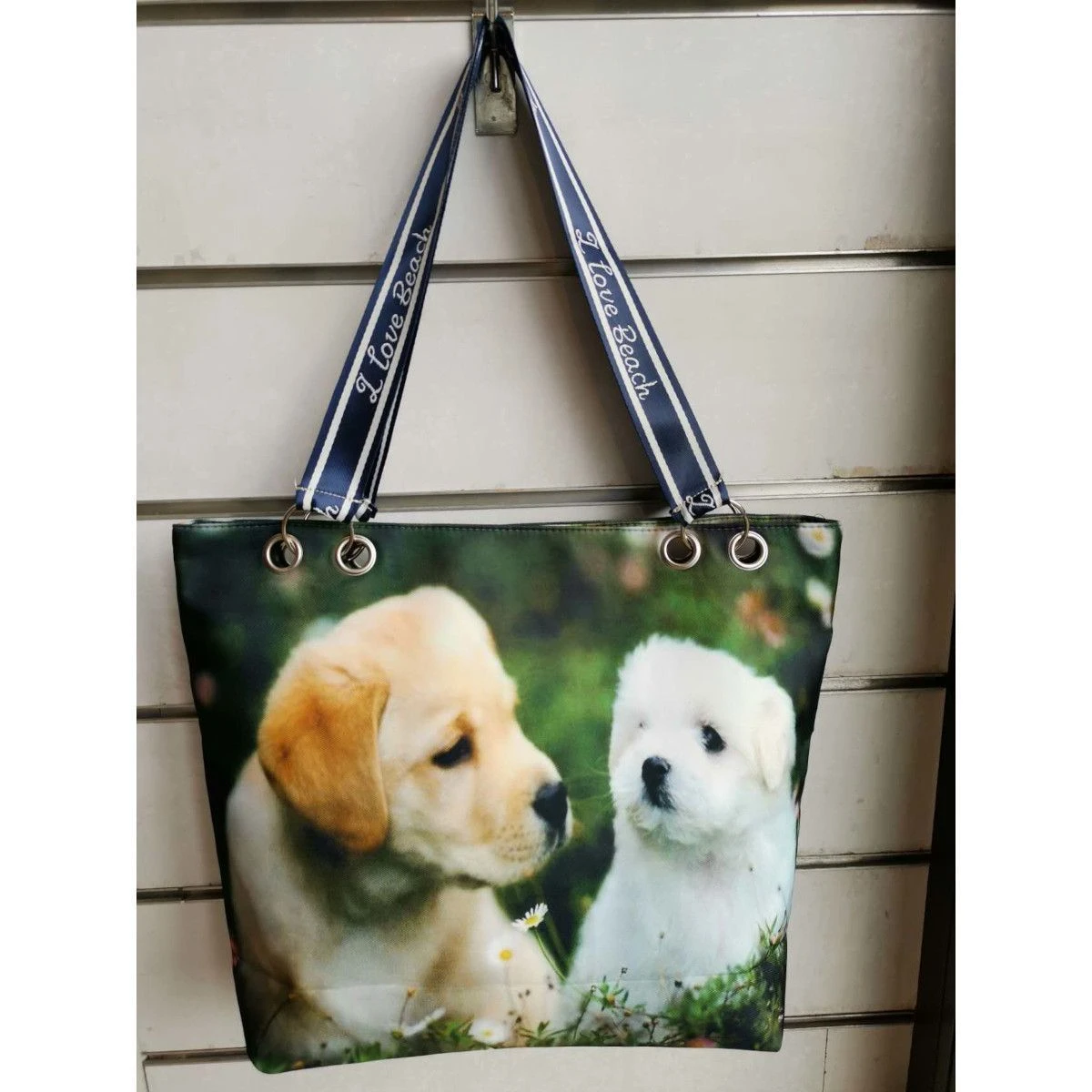 Sac fourre-tout pratique en tissu de polyester avec dessins de 2 chiens.