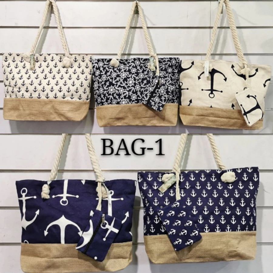 Un joli sac de plage fabriqué dans un tissu robuste et durable imprimé à esprit marin.