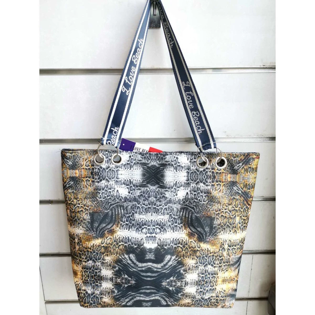 Deux longues poignées à motif « I Love Beach » pour un transport facile.