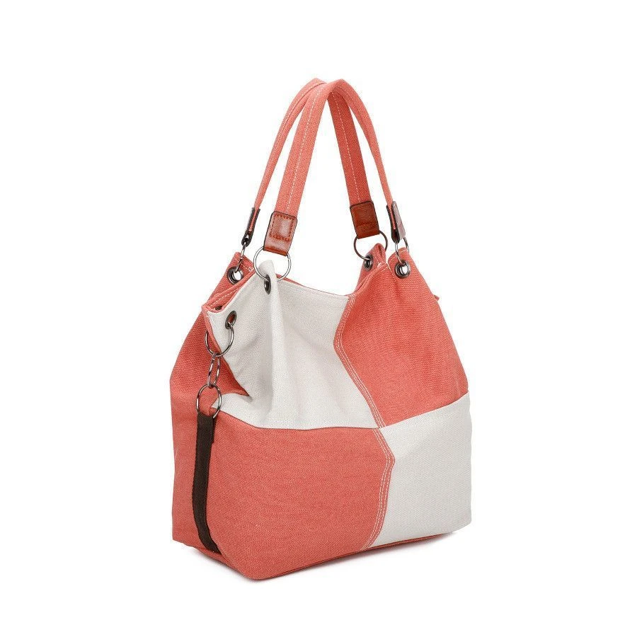 Sac cabas fabriqué en toile à motif color block carré sur l’avant et uni au dos.