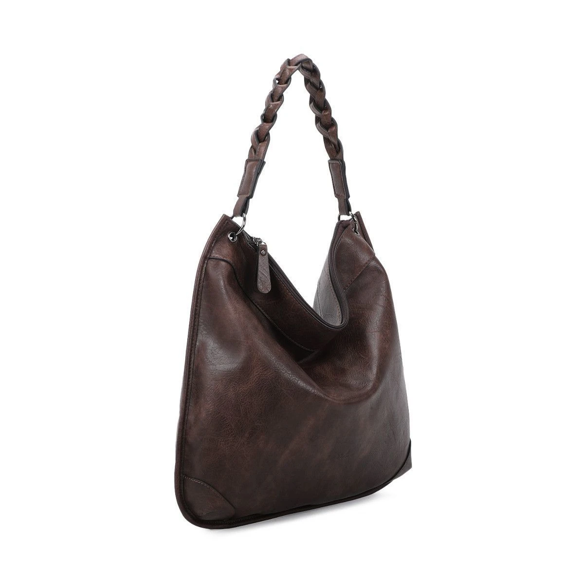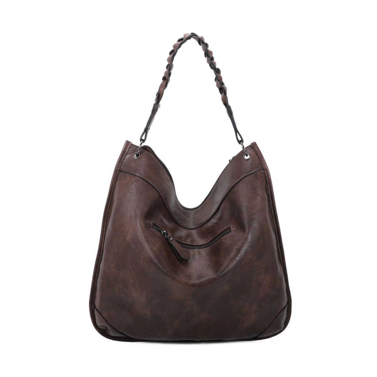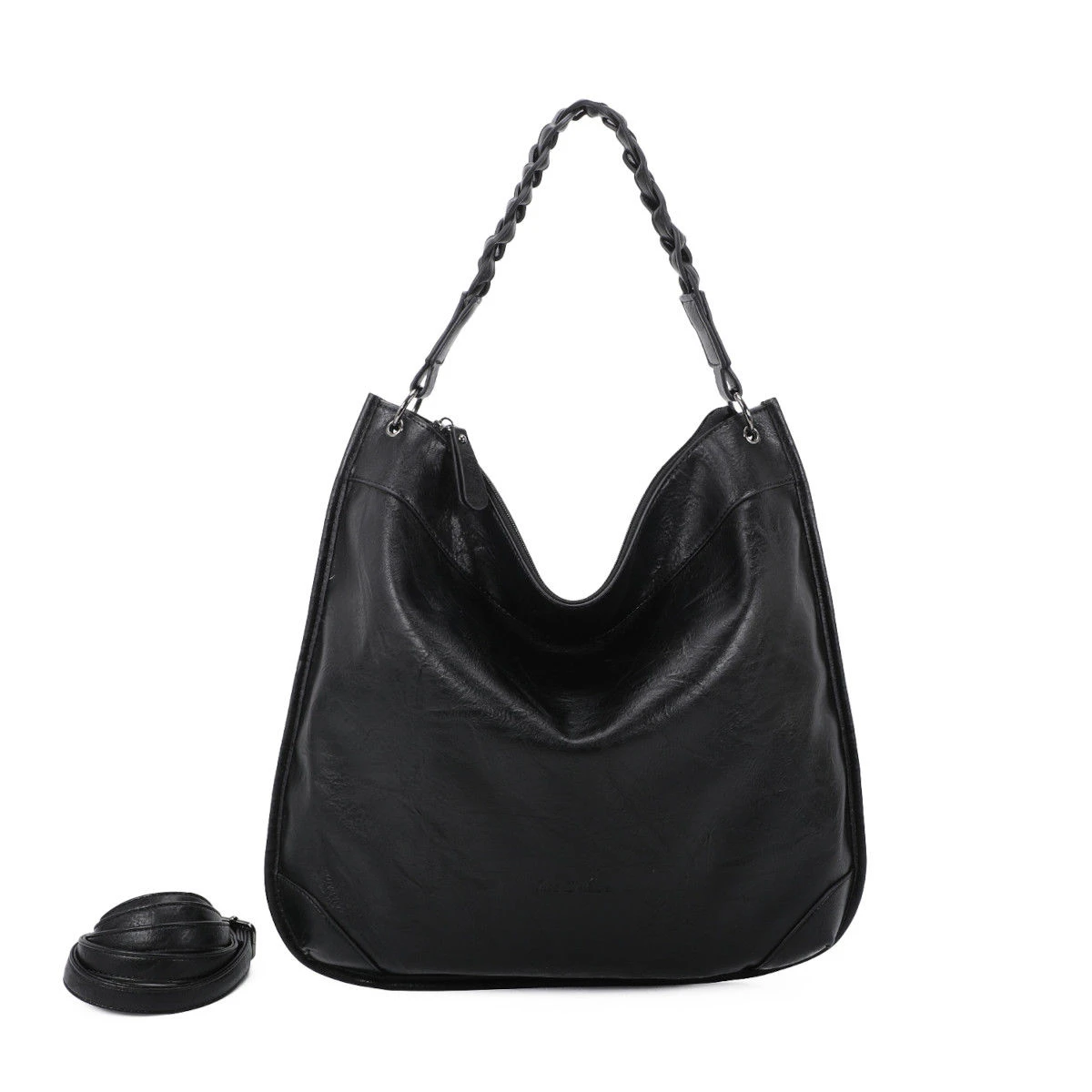 Pour plus de mode, le sac est fini avec une poignée longue tressée.