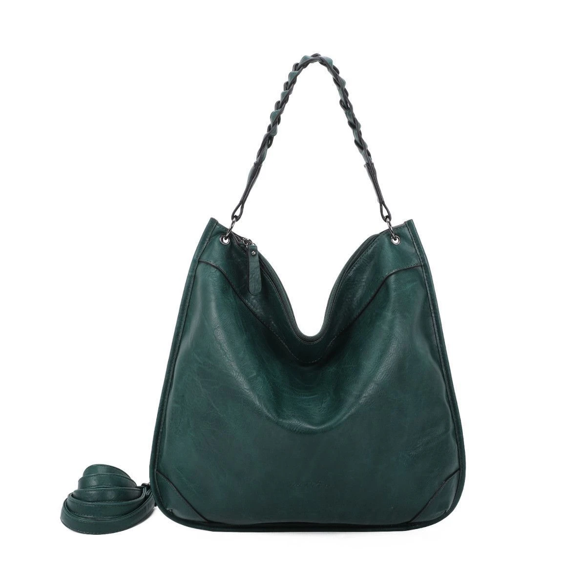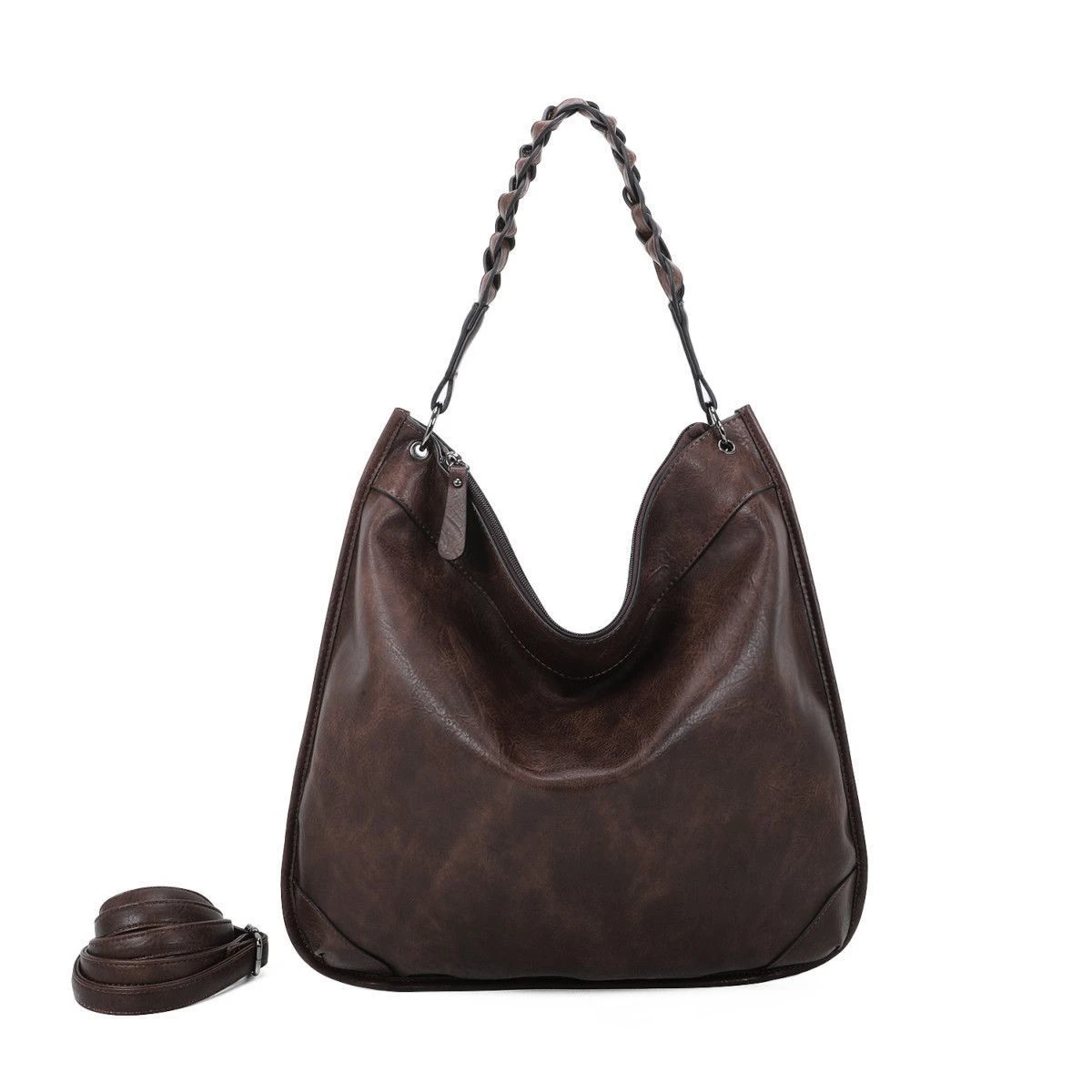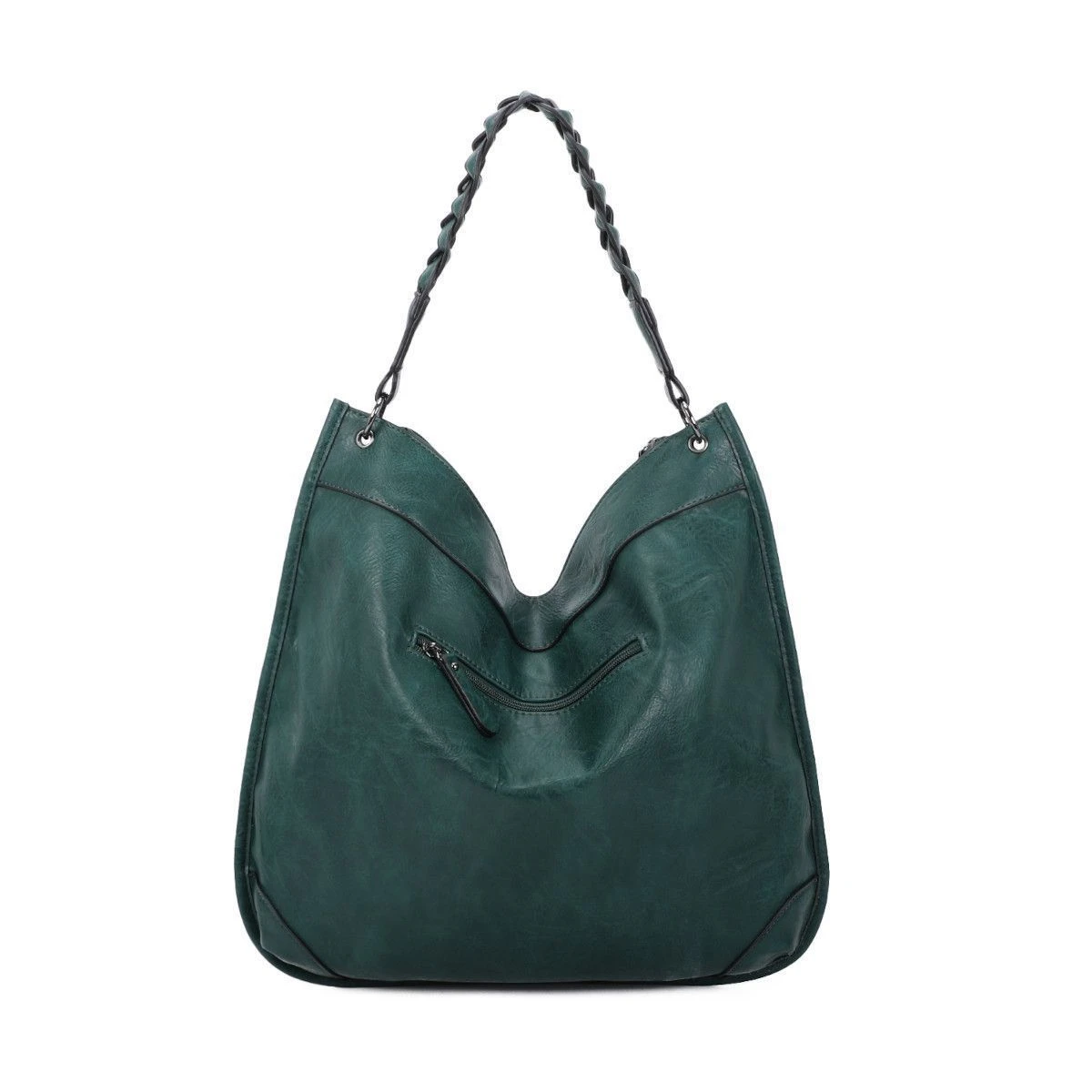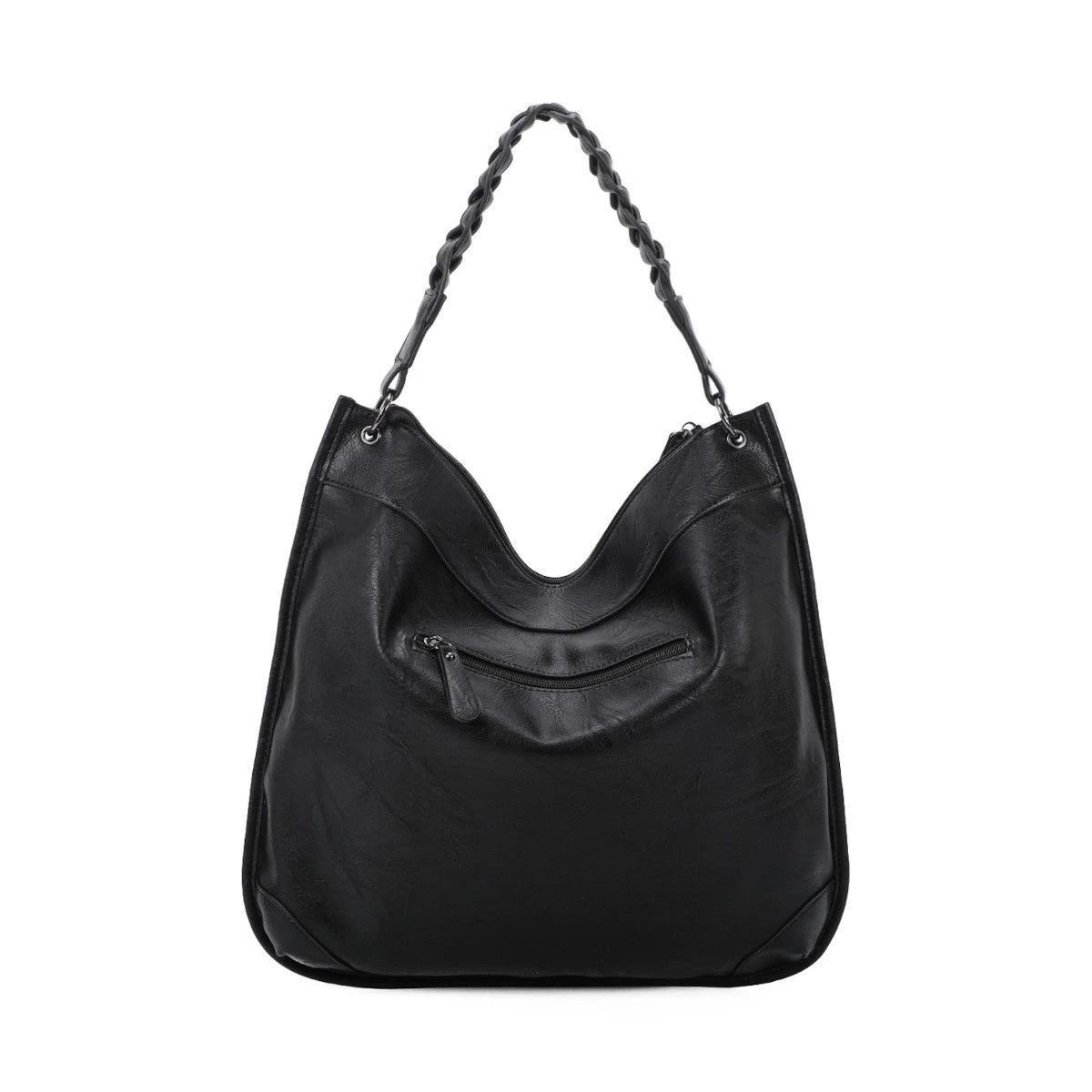 Pour plus de mode, le sac est fini avec une poignée longue tressée.