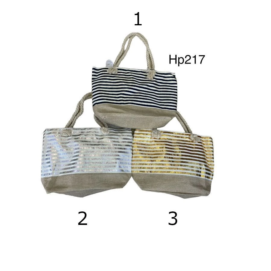 Sac de plage en polyester avec des rayures imprimées au finition brillante.