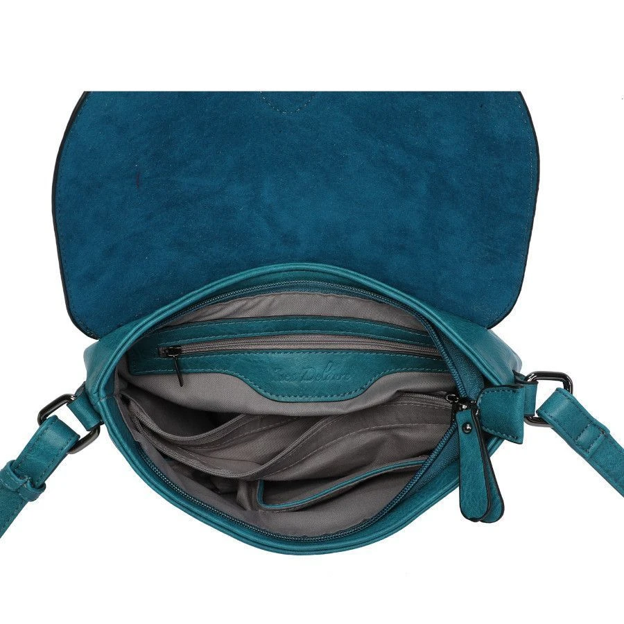 Sac Besace Porté Croisé Effet Bimatière Zippé Et Bride à Boucle Décor